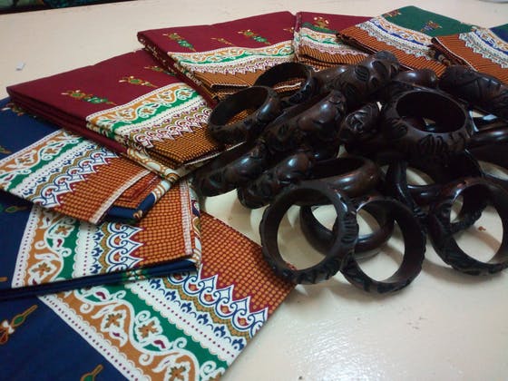 独特の色づかいの布(チテンゲ生地)、木製品(手作りのバングル)など、市場に並ぶザンビアならではの品をセレクトしてお返しします。