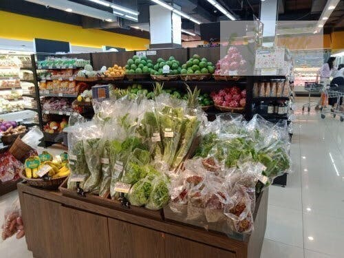 ジャカルタ市内スーパーマーケットの弊社野菜コーナー(撮影掲載許諾済)