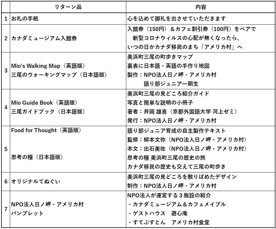 今回のプロジェクトによる資金で、この歴史的な国際性を背景とした、英語版「語り部ジュニア」養成事業を実施し、ふるさと教育の充実を図り、その教育を通じて、子どもの頃からふるさとを愛する気持ちを醸成し、ふるさとに残りたくなるようにすることが可能と考えられ、人口減少に歯止めをかけていきたいと考えています。