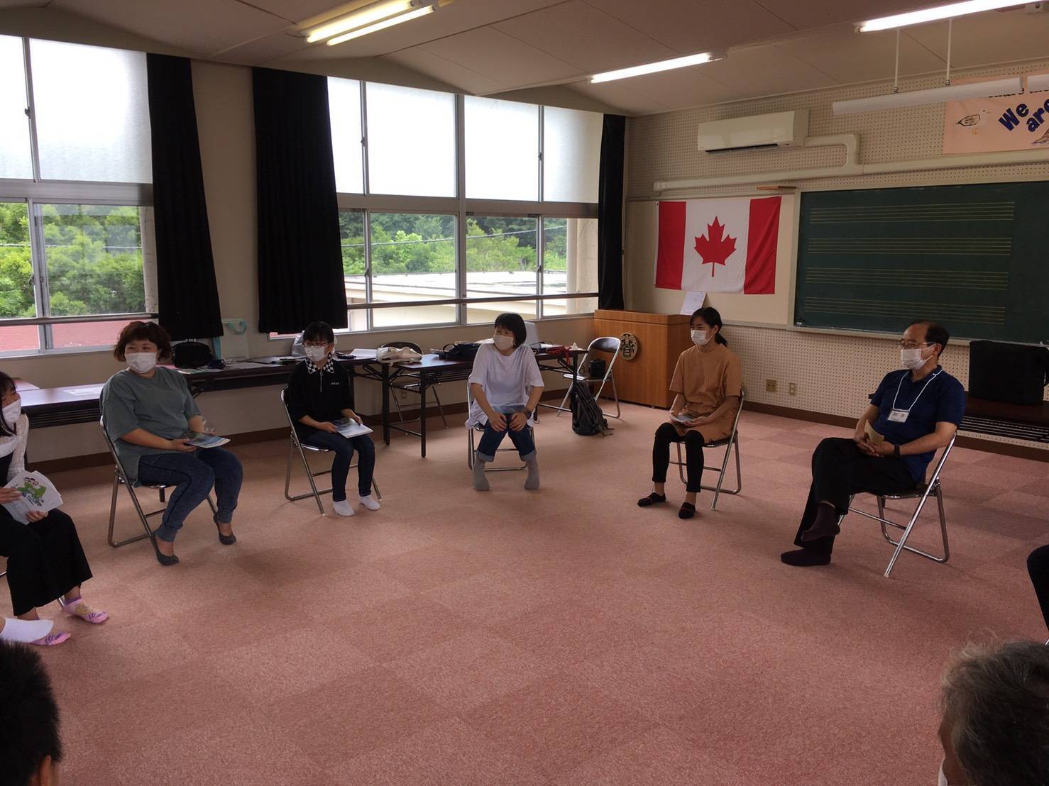 アメリカ村やカナダ移民の歴史を勉強した後に、みんなで輪になって英語の勉強をしました。