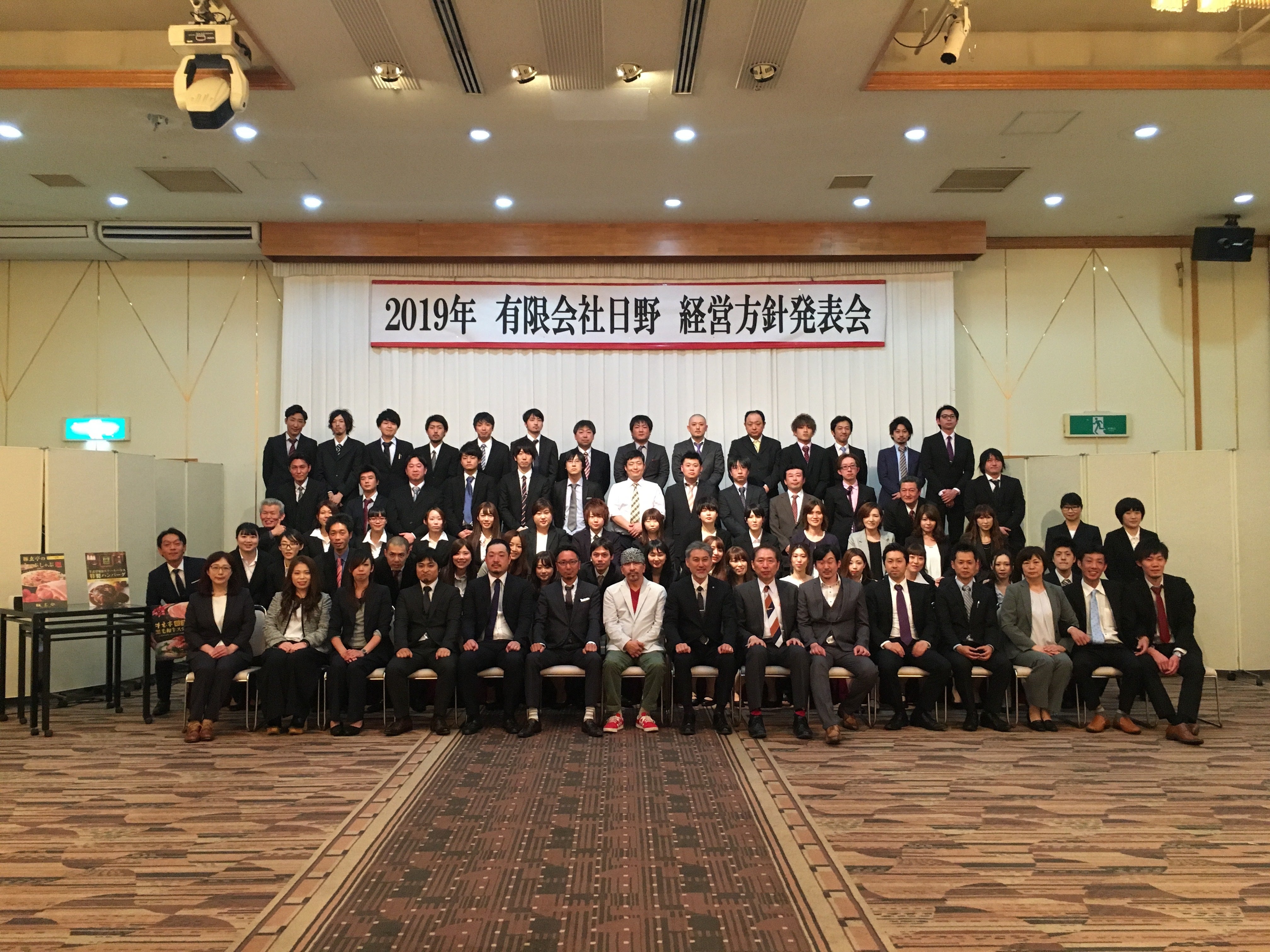 有限会社日野・牛玄亭グループの日野亨でございます。昨日スタートさせて頂きましたクラウドファンディングに対し、多くの方々より心あたたまるメッセージと共に貴重なご支援を頂いておりますことに、社員一同 心から感謝申し上げます。写真は昨年の5月に行いました弊社の経営方針発表会での集合写真でございます。 未熟な私たちを支えて頂いている皆様に、あらためて感謝致します。