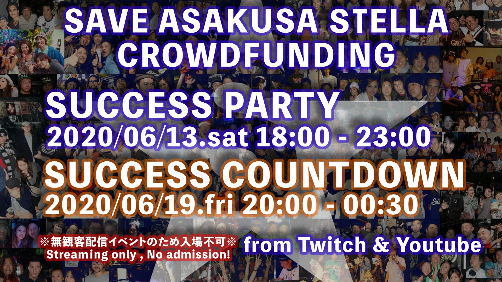 2020/06/08 18:03日々ご支援の程、ありがとうございます!この度、6/1に目標額を突破した事を記念、そしてクラウドファンディング最終日のカウントダウンとしてオンラインイベントを2本開催致します!2020/06/13.Sat 18:00 SAVE ASAKUSA STELLA CROWDFUNDING SCCESS PARTY1本目は6/13(金)18時よりスタート!毎週水曜開催の《STAR☆WEDNESDAY》よりTakahiro Aoki, Redd, TOMAS, CATRONICA!毎週木曜開催の《GROOVE RADAR》よりB, kazpulse、そして気鋭のイベント《ニコラスのワガママPARTY》よりWAS$ABI, とよしまが出演!共にAsakusa Stellaをホームグラウンドとして長くイベントを開催している3イベントの合体となります!2020/06/19.Fri 20:00 SAVE ASAKUSA STELLA CROWDFUNDING SUCCESS COUNTDOWN PARTY2本目は6/19(金)20時、クラウドファンディング最終日に開催!豪華ゲストとして、今回のクラウドファンディングにコメントを寄せて頂いた3名、WASEI "JJ" CHIKADA, Abo Kazuhiro, Yummyが登場!オープニングは1本目にも出演した《ニコラスのワガママPARTY》よりWA$ABI、ラストは姉妹店Ueno Stellaで人気のVDJ、UKAIが出演!クラウドファンディングのラストを大いに盛り上がるDJ陣で締め括ります!配信はYoutubeまたはTwitchで2本のオンラインイベントはAsakusa Stellaの公式Twitchアカウント、および公式Youtubeアカウントにて配信します!今後も以下の配信用アカウントで発信していきますので、是非フォローをよろしくお願いします!Twitch : https://www.twitch.tv/asakusastellaYoutube : https://www.youtube.com/channel/UCOn_aGRU-F2MNTf0fkbeDpg見逃せない2本立てイベントを、是非ご自宅でお楽しみ下さい! もっと見る