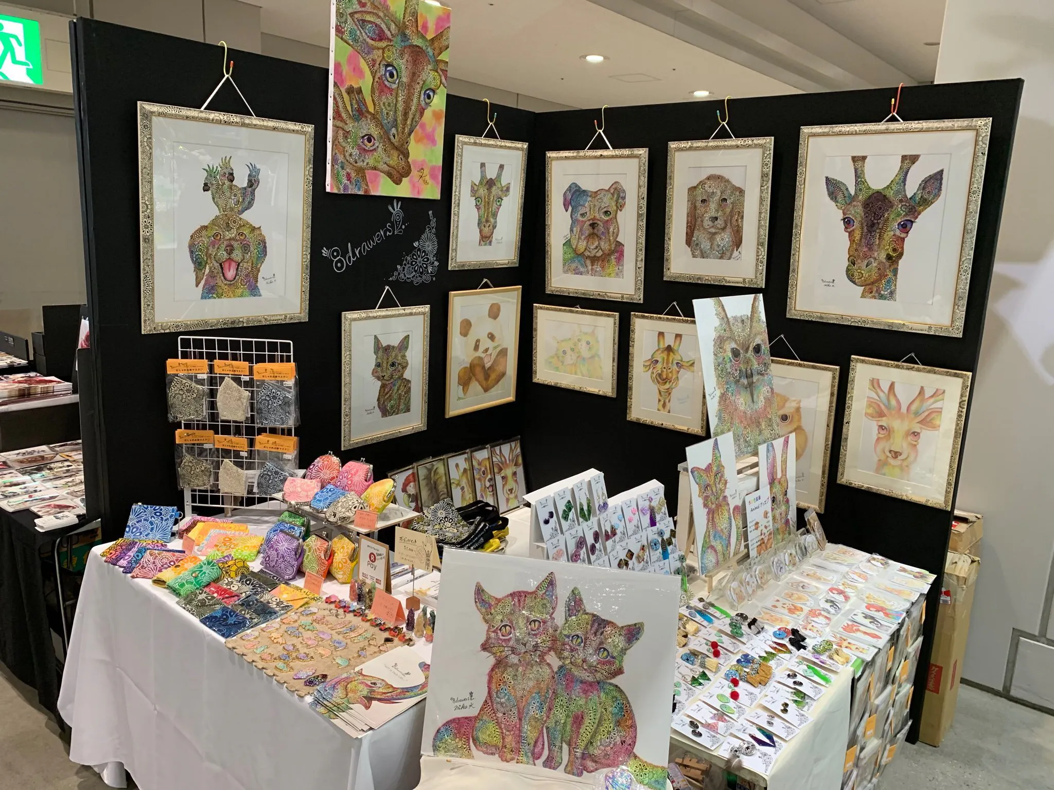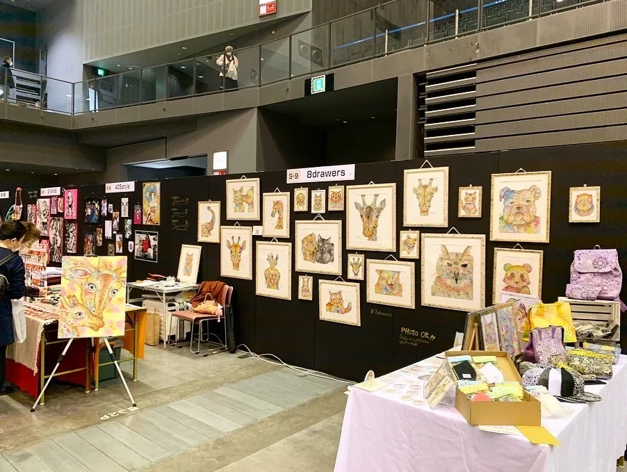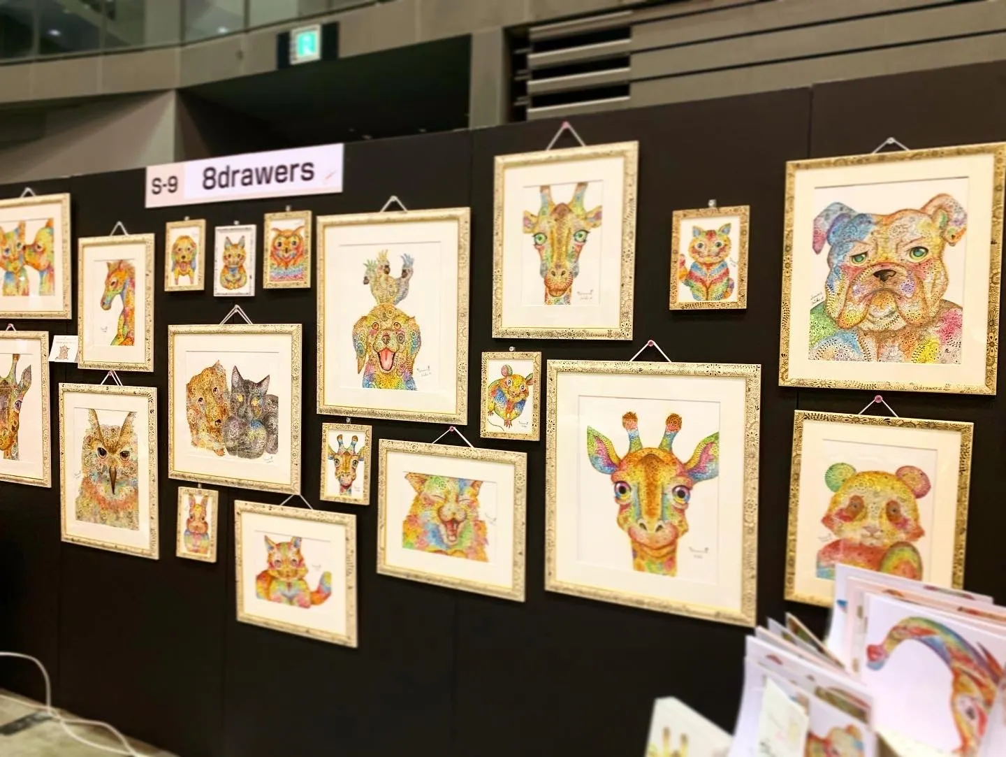そのほかにも百貨店での絵画のポップアップや、大きな会場でのイベントにて絵がとても人を魅了すると言うことで会場の入り口に一番近い場所に8drawersのブースを設置していただきました。