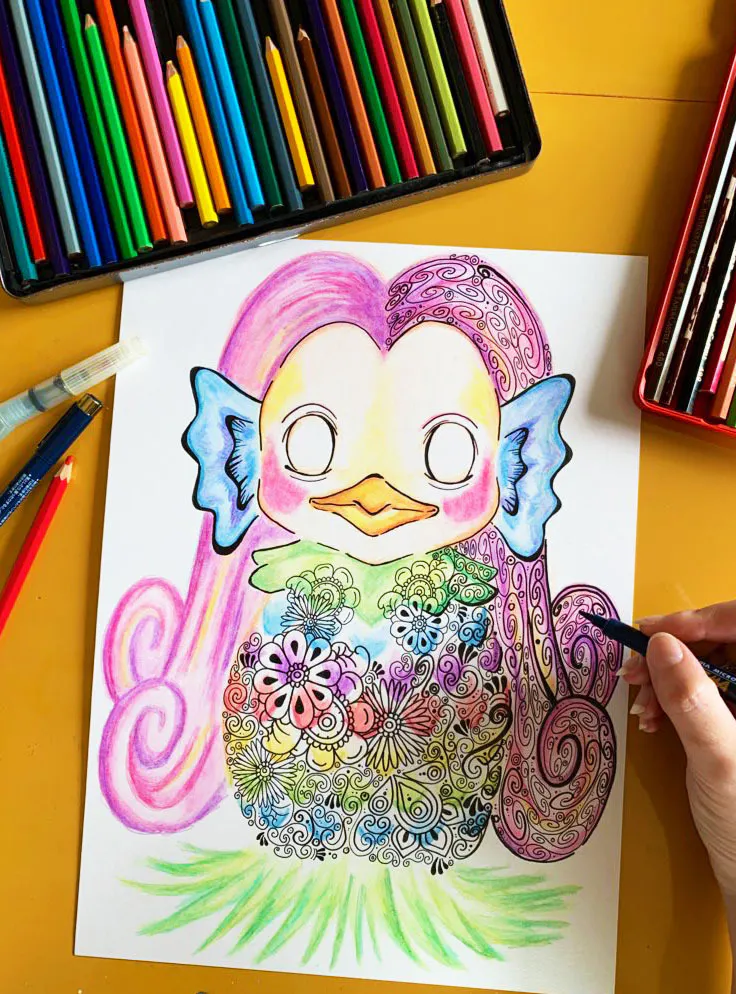 ・ボード、フレーム、水彩色鉛筆、ペン etc.