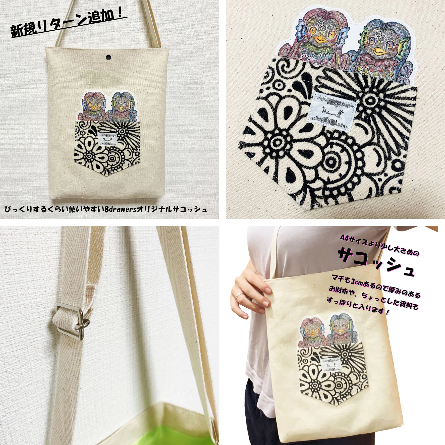 NEW→・8drawersオリジナル サコッシュ(生成り or 黒)