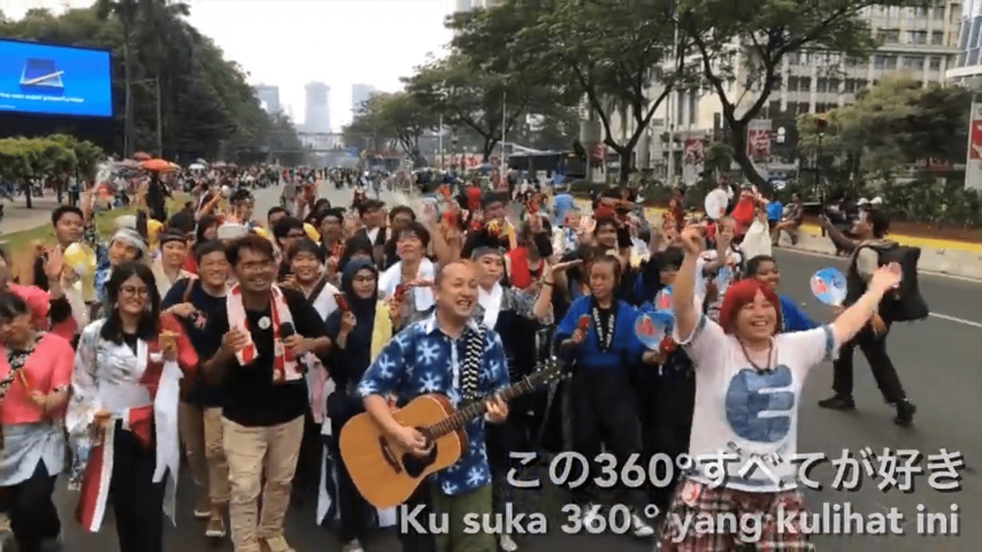※インドネシアで撮影した360°MVのスクリーンショットです。後ろで盛り上げてくださっているのがインドネシアYOSAKOIの皆さんです。