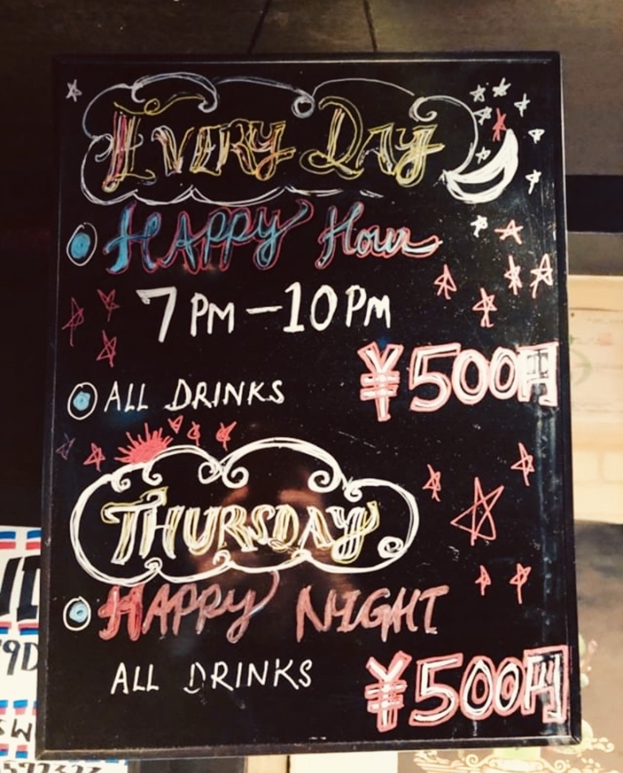 毎日19:00~22:00までは全ドリンク一律500円で提供しております。