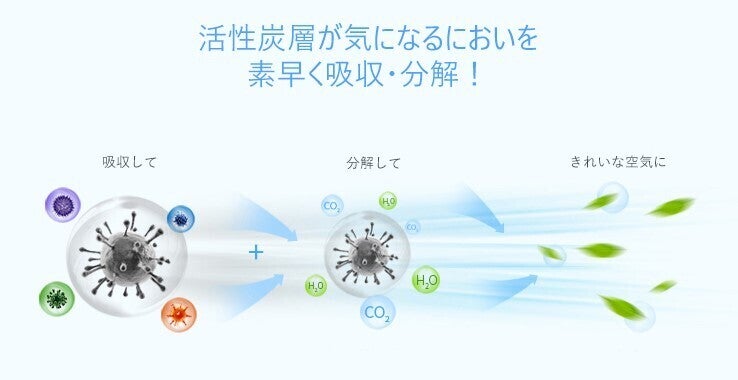 光触媒技術を使用した光触媒層、活性炭層、HEPAフィルターを組み合わせた