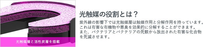 有害物質を分解して、水分子や微量の二酸化炭素を生成します。