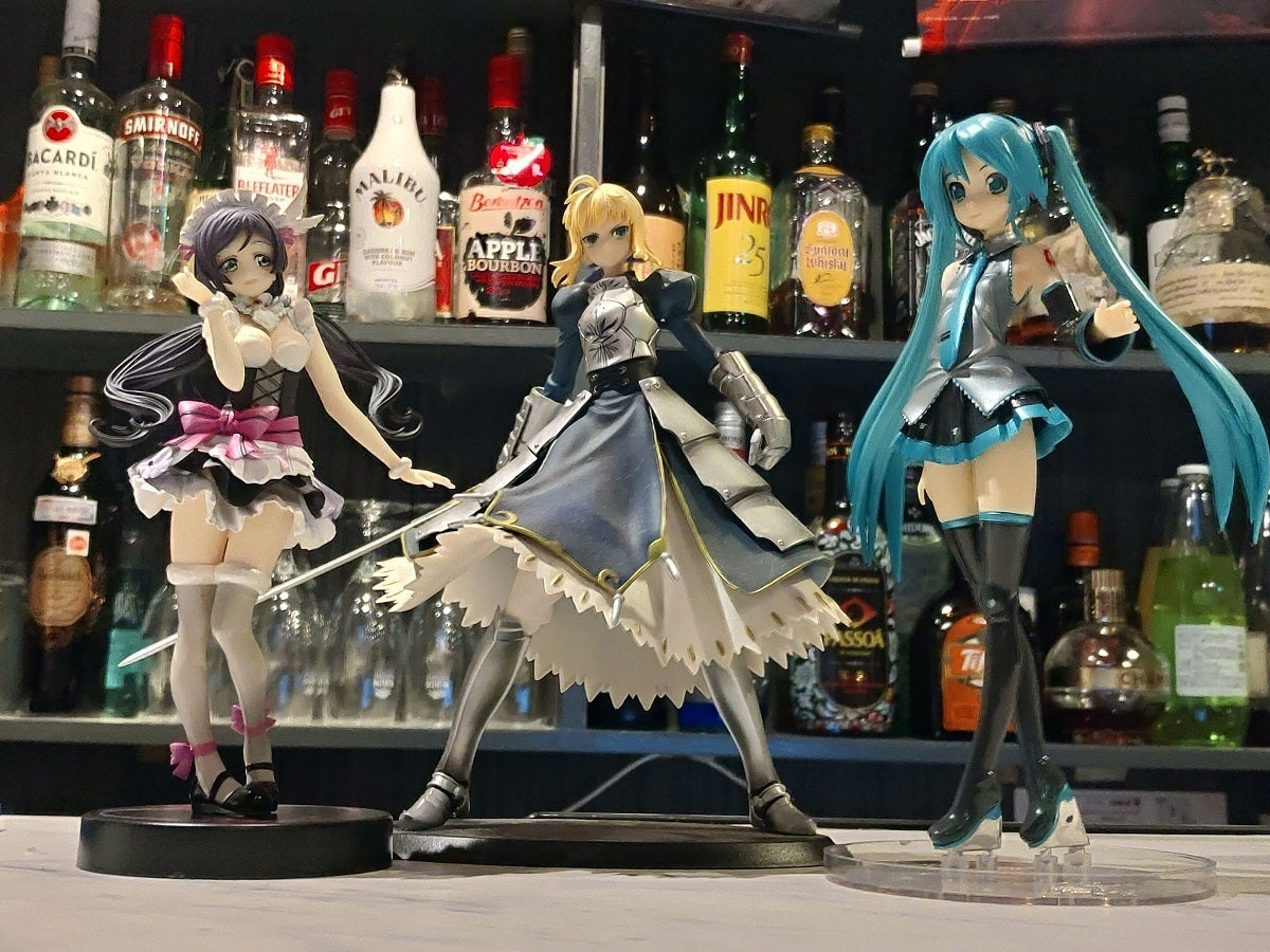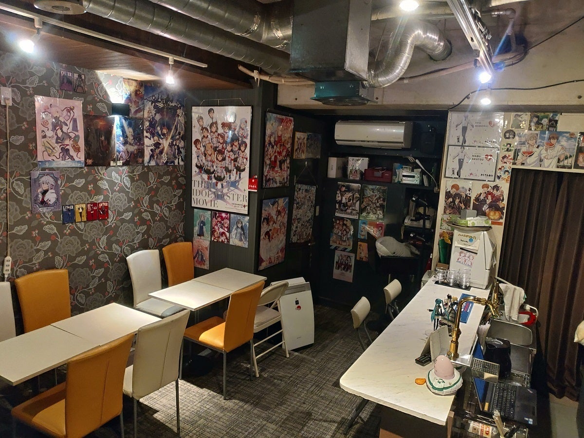お客様とキャストが持ち寄った、様々な作品のフィギュアやポスターが飾られています。
