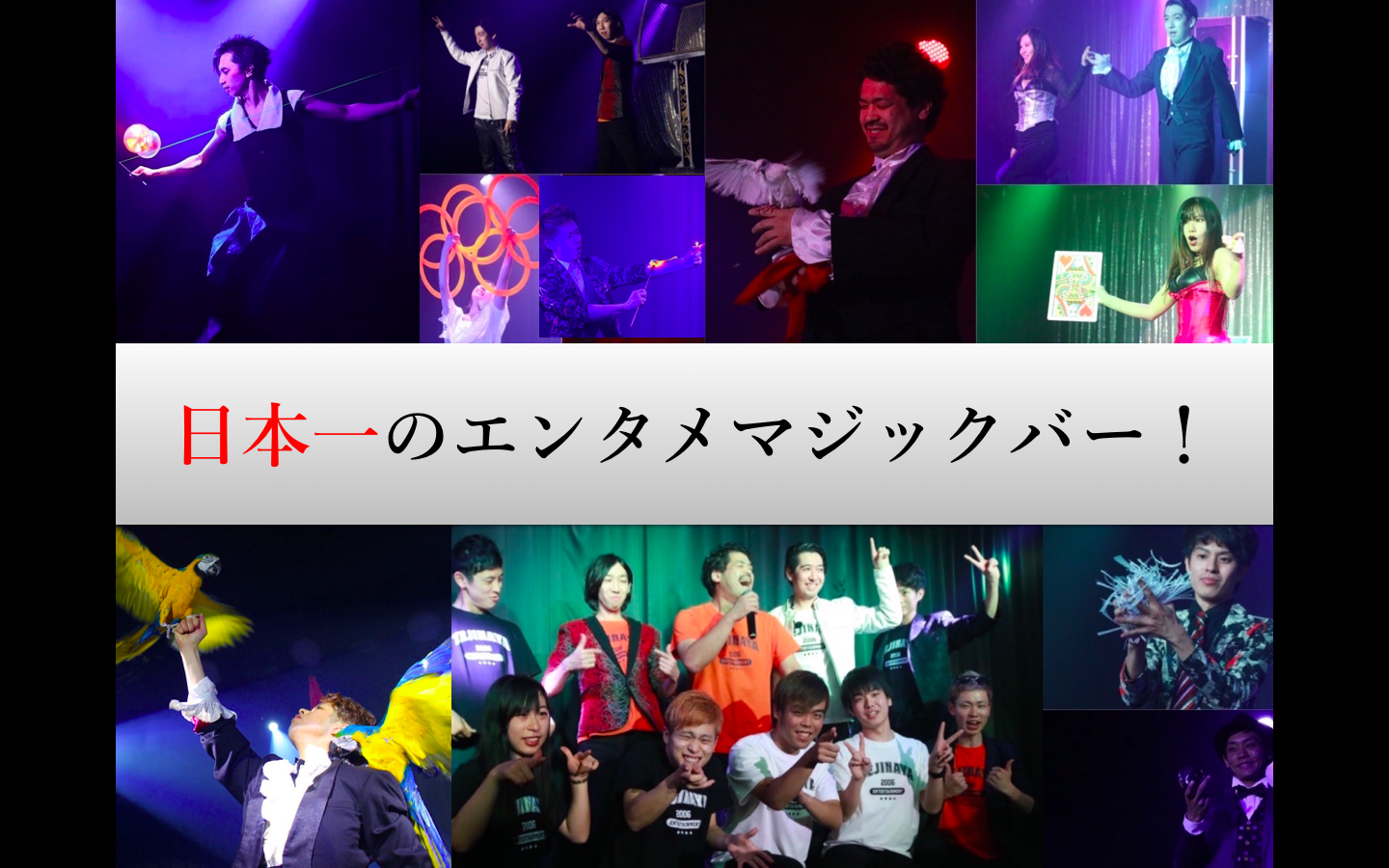日本最大のマジックエンタメバーで商品を「元気」とし、目の前のテーブルで見れるテーブルマジックはもちろん、大きなイリュージョンや鳥を使ったマジックなどを大迫力でご覧になれるステージマジックショーも年中毎日見ることができます。