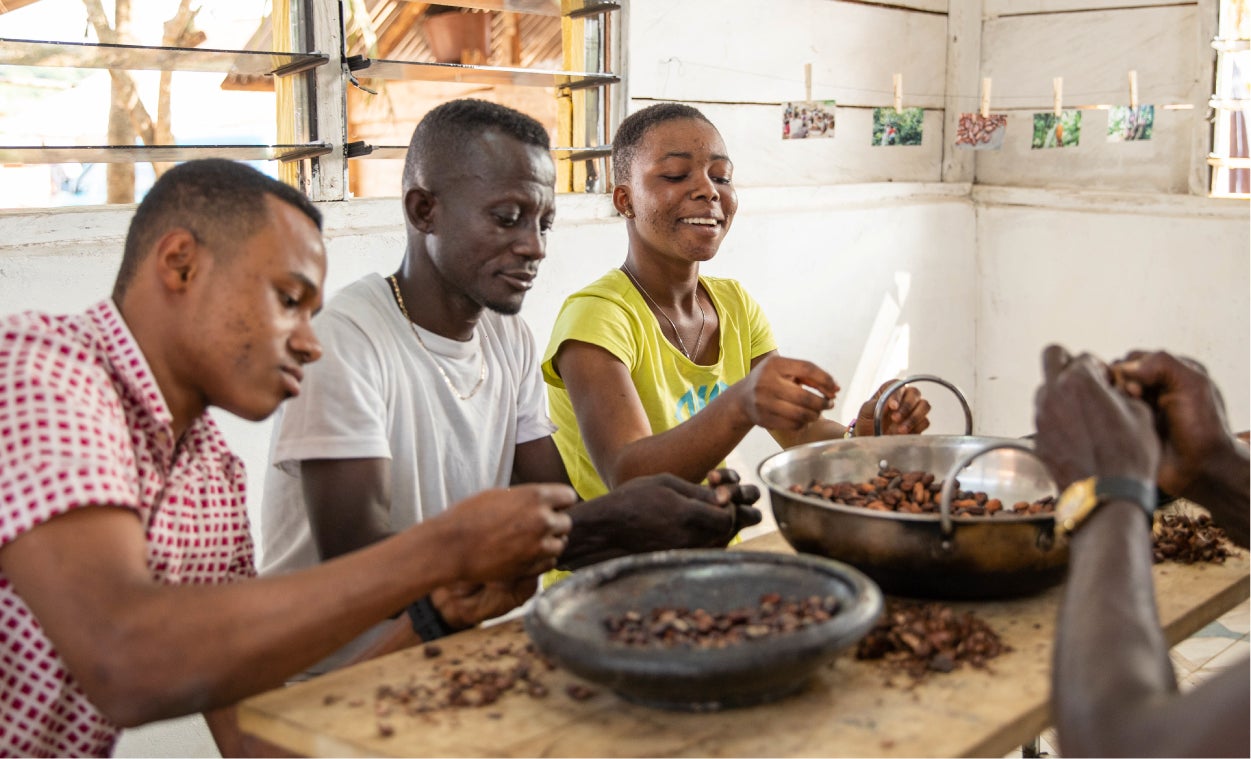 私たちはガーナのカカオ農家さんと対話し、彼らの美しい生き方を伝えると共に、従来のフェアトレードだけでは解決できない課題を変革しようとしています。