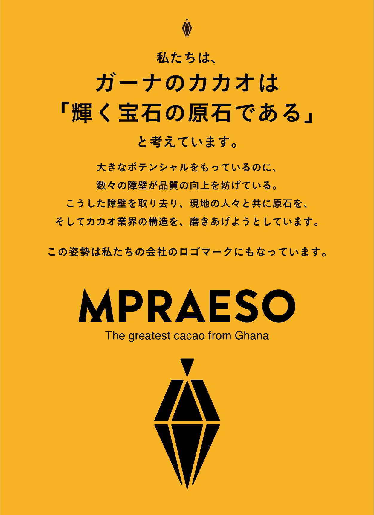 MPRAESO(エンプレーソ)は、チョコレートを心から愛するメンバーが「カカオに関わる全ての人々が笑顔になること」を願って立ち上げた会社です。