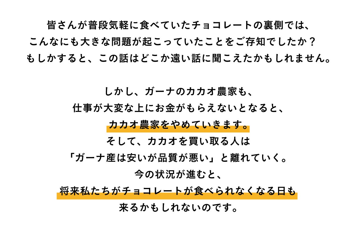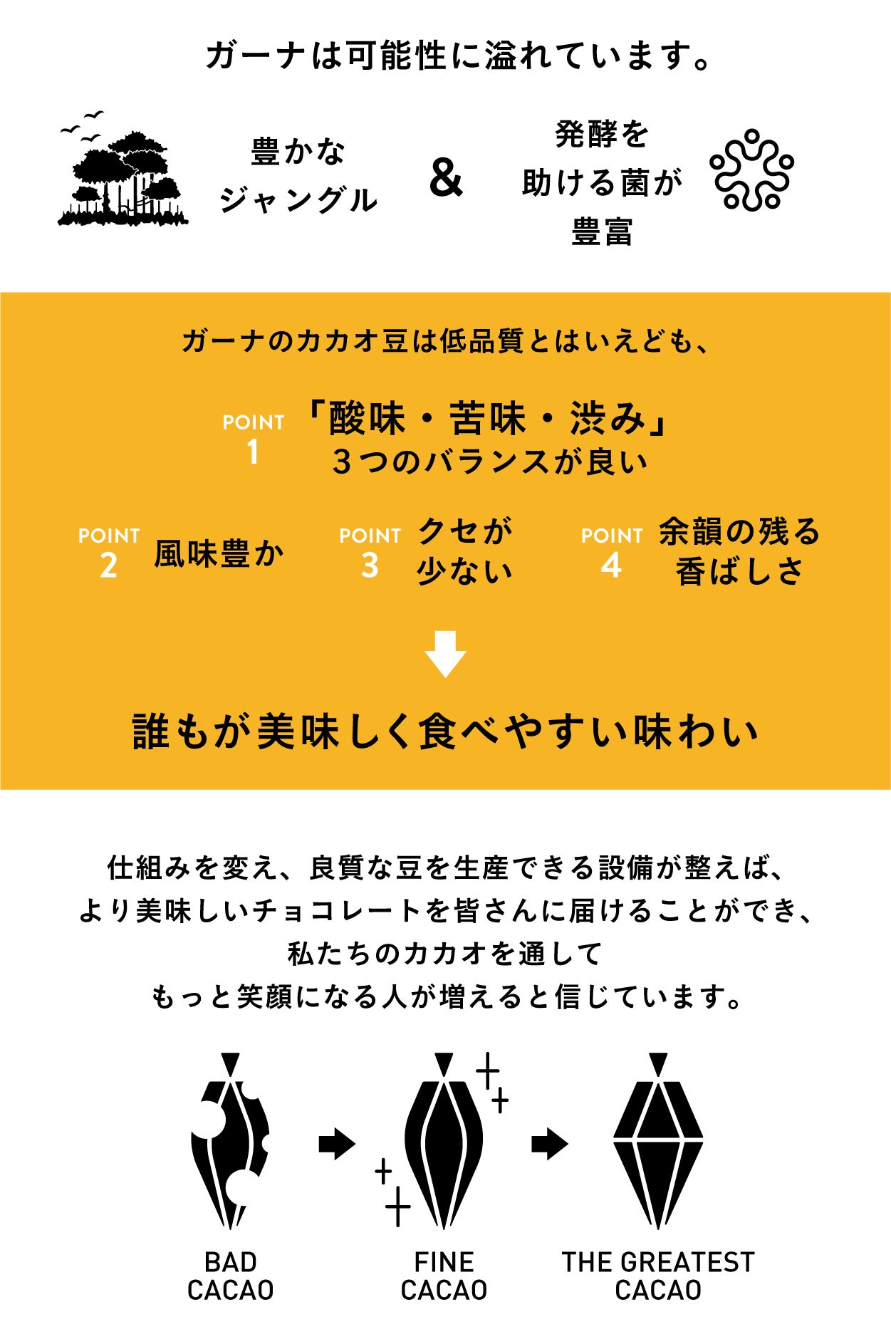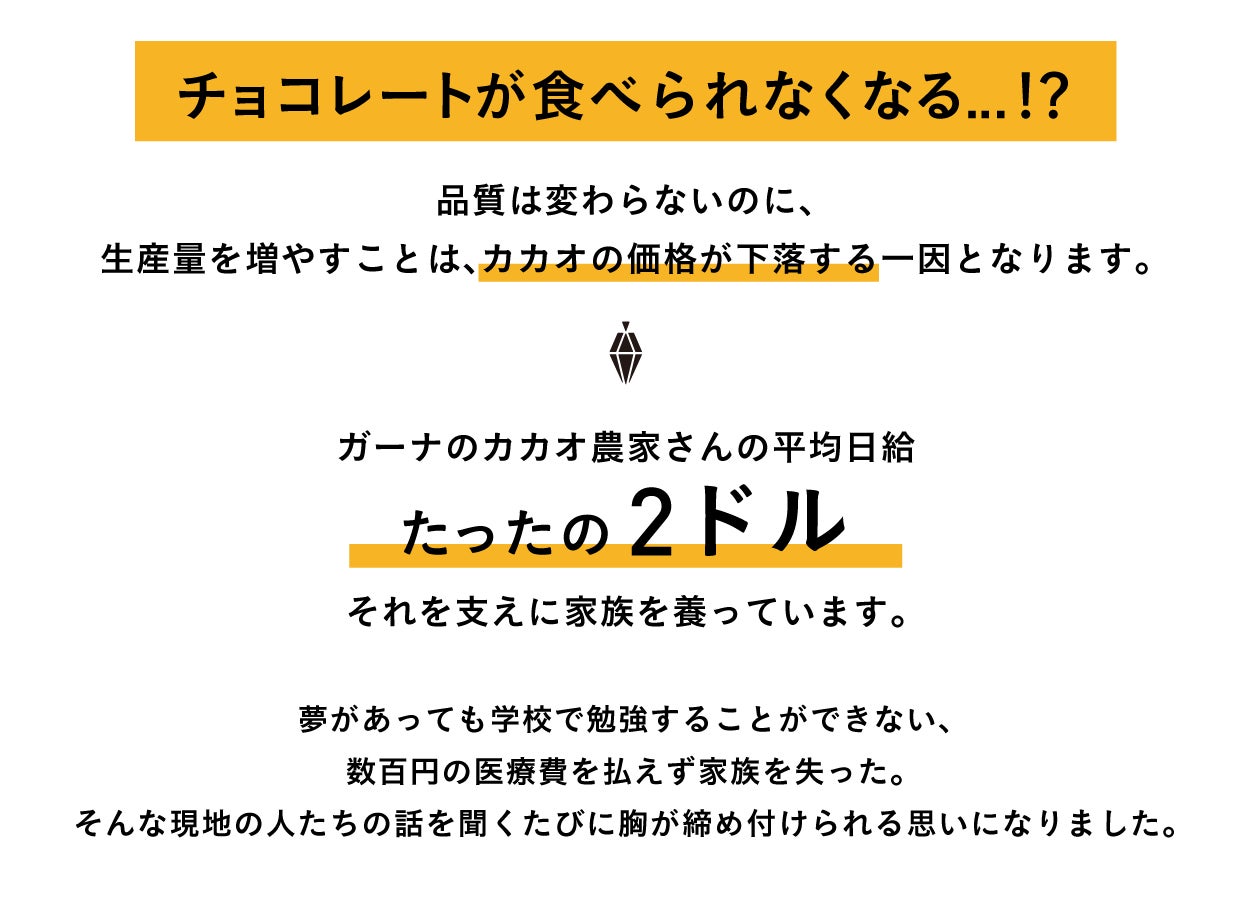 今は検証実験が終わった段階で本格的な輸出はこれからですが、ガーナのカカオ豆の取引許可証を所有している立花商店さんと協力して、日本の皆さんにお届けする予定です。楽しみに待っていていただけると嬉しいです!
