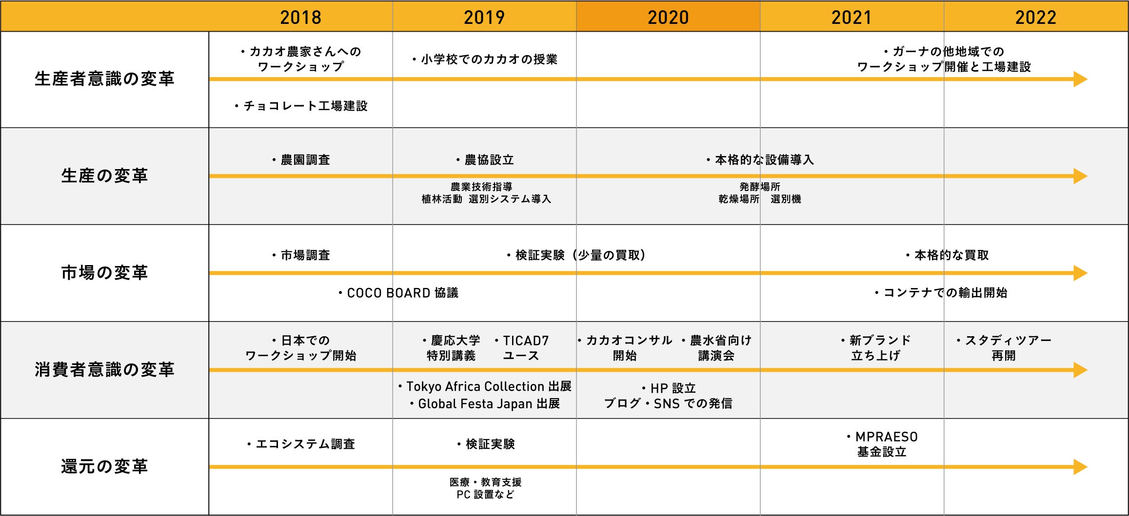 MPRAESOは今までガーナの人にチョコレートを知ってもらう活動、農業教育、そして輸出に向けたシステムの土台作りをしてきました。そして、渡航するたびにサンプルを持って帰り、飲食業の方々にお渡ししたところ、「深いコクがあって美味しい!ぜひ使いたい!」との声をたくさんいただきました。