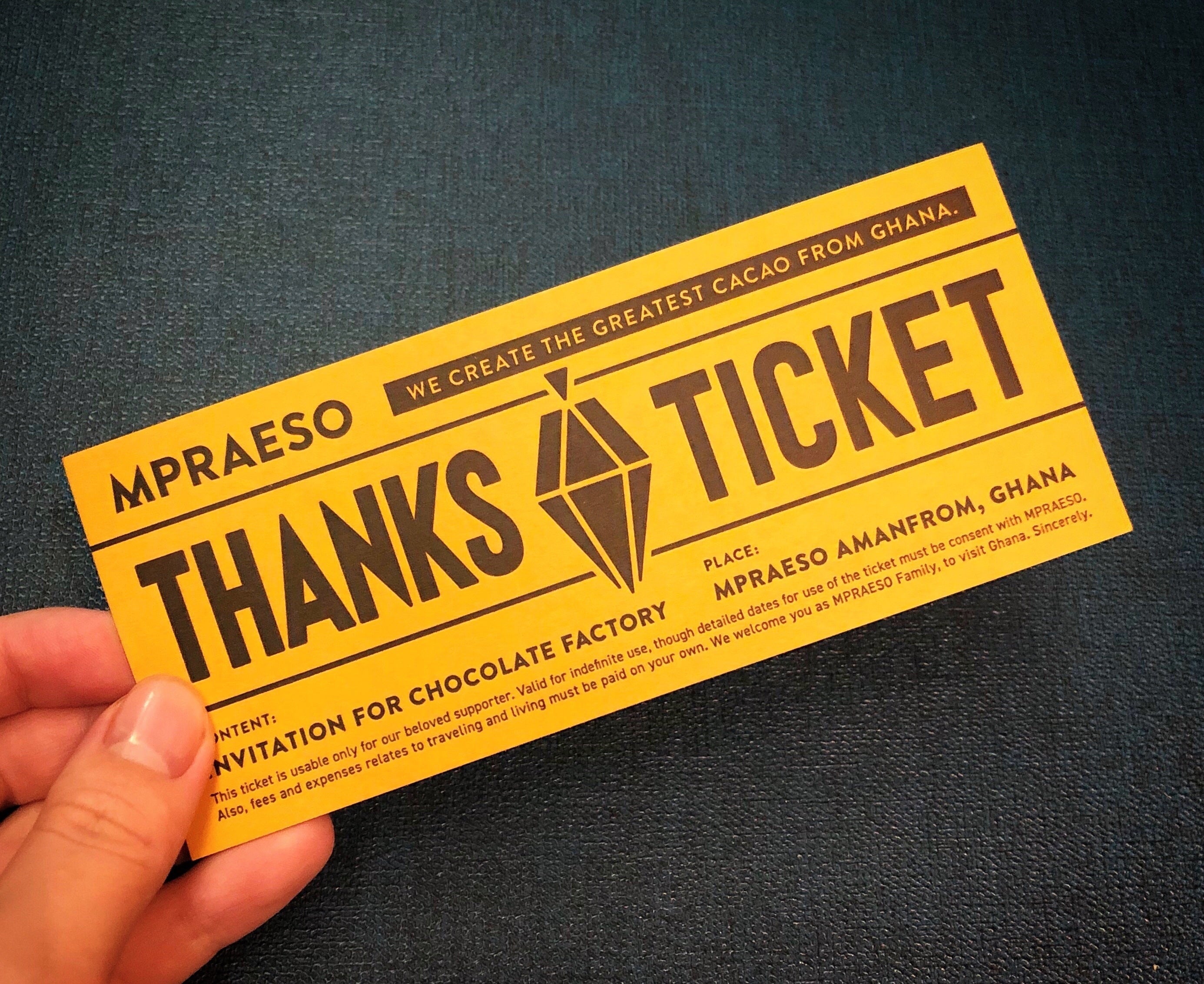 リターンの製造を日々進めております。今日は嬉しいことに、待ちに待っていた工場へのチケットが家に届きました。MPRAESOのデザイナーさんが細部までこだわってくださり、今回のためにオリジナルで製造した活版印刷のデザインになっています。このチケットに1枚1枚心を込めて私がメッセージを書かせていただきます。