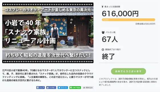 本当にやれるのか、こんな個人のわがままに付き合ってくださる方々がいるのか、街の小さな店が一つ無くなったところで、社会的にはなんの損失もない事柄にクラウドファンディングを使っていいものなのか、この企画を立ち上げるまで毎日悩みました。