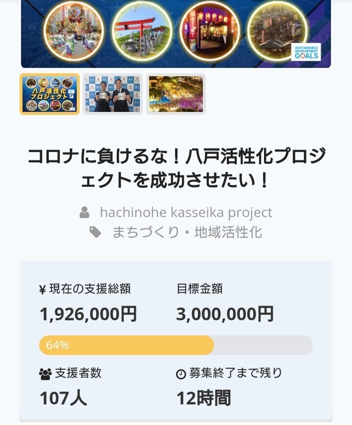 皆さま、こんにちは!八戸活性化プロジェクト実行事務局です。早いもので本日が最後です。100名以上の方にご支援いただき、金額も200万円目前まで集まりました!本当にありがとうございます!まだ23時59分までご支援を受け付けておりますので、支援したりない方やまだ迷っていた方など、周囲にいらっしゃいませんか??これから夏8月に向けて、帰省時にみんなで使ったり、帰省の代わりのプレゼントにするなど活用いただき、とても嬉しく思っています♪まだまだ最後まで皆さまからのあたたかいご支援をお待ちしております!!