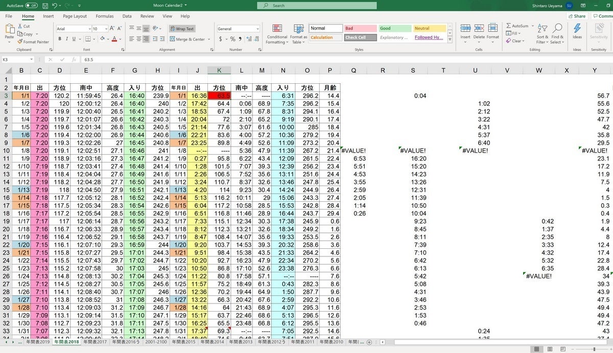 まず、月を撮影に行く時、事前にExcelで作成した資料をもとに下調べします。