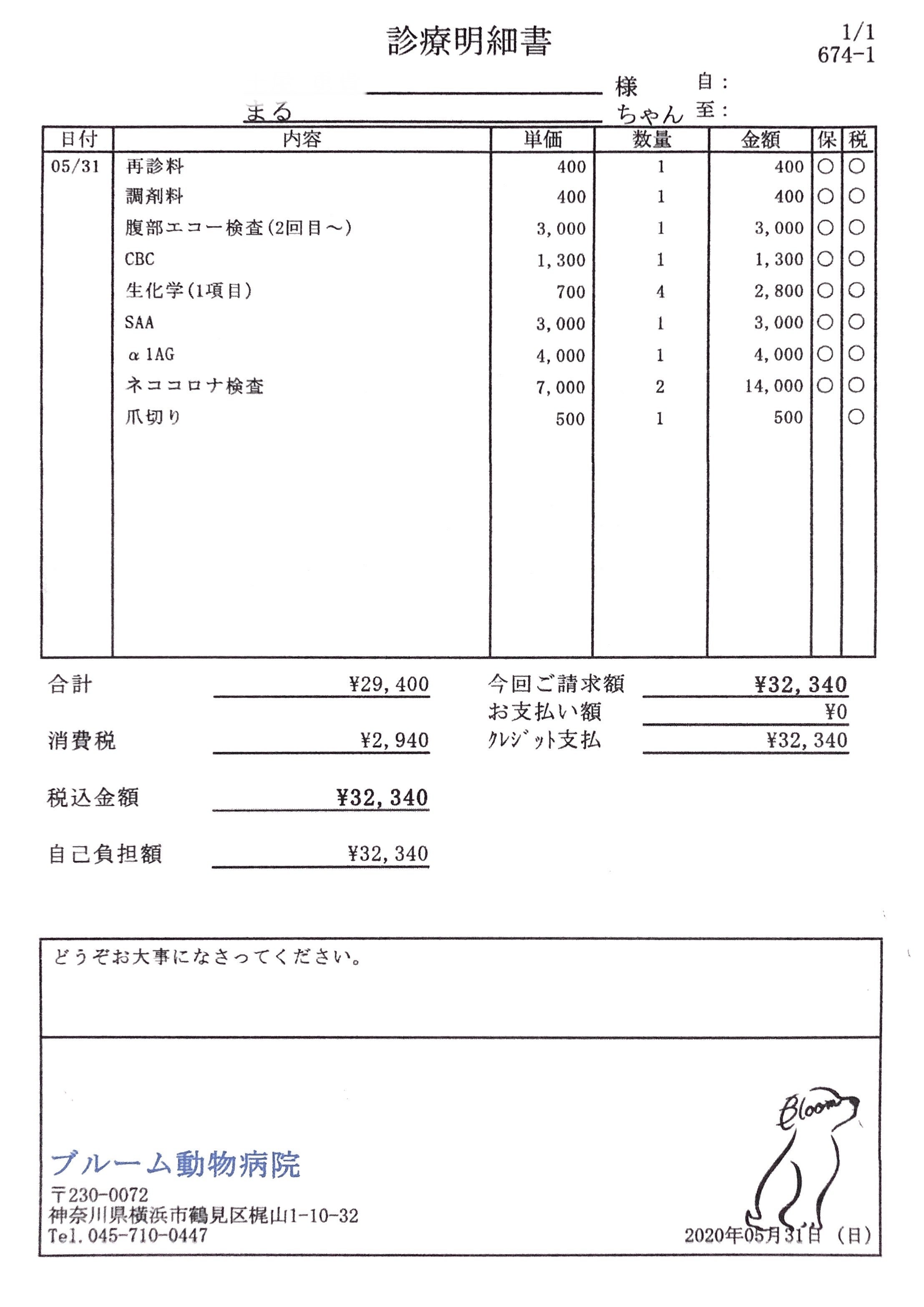 前回までに薬はすべて購入しておりましたので、今回かかった費用は比較的少なくなっております。