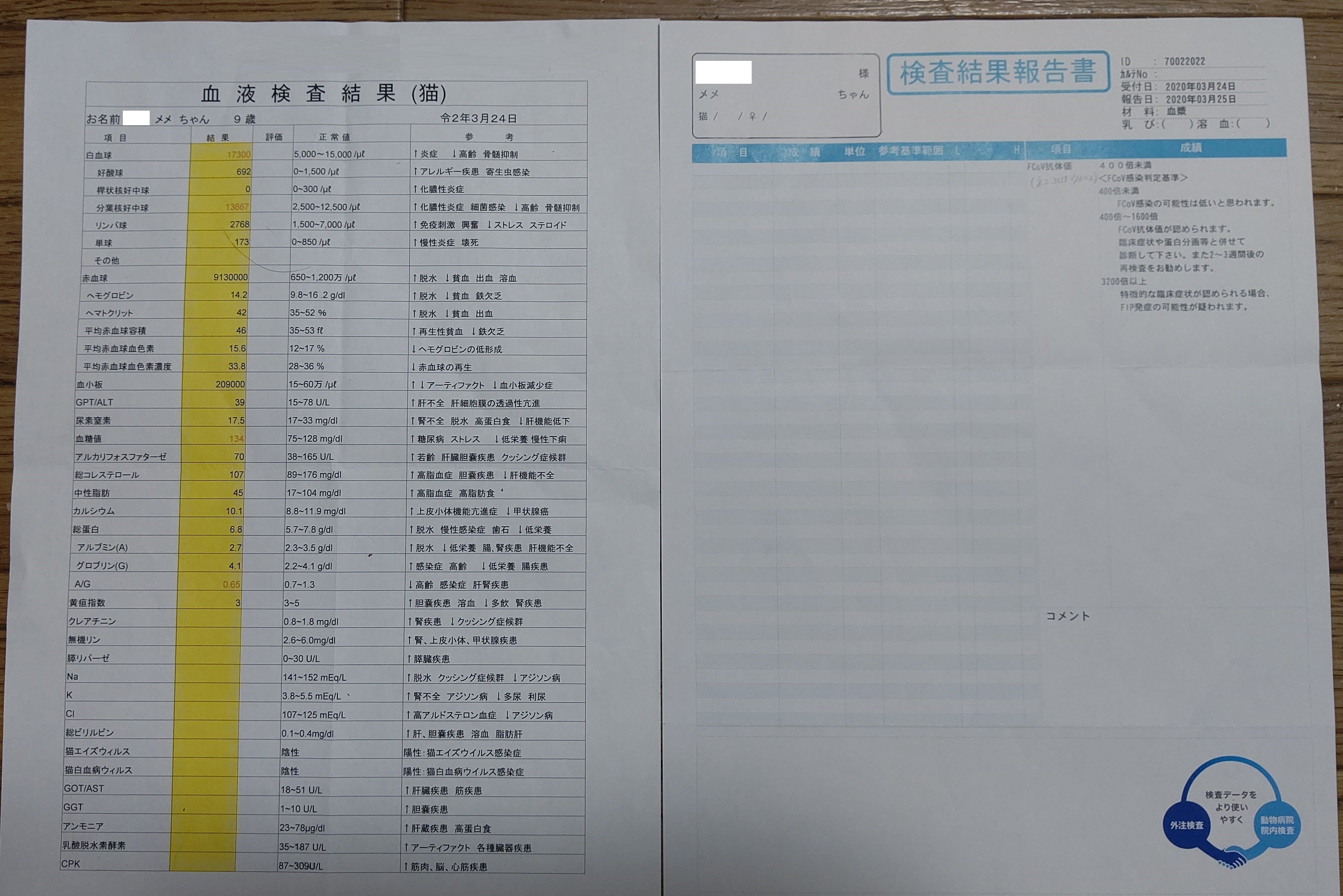 3/24 かかりつけ医受診(食欲不振、下痢、嘔吐、熱40℃) 血液検査、猫エイズ(陰性)、猫白血病(陰性)、猫コロナウイルス(陰性)3/28 かかりつけ医再受診(食欲不振、下痢、嘔吐、熱39℃) 診察他