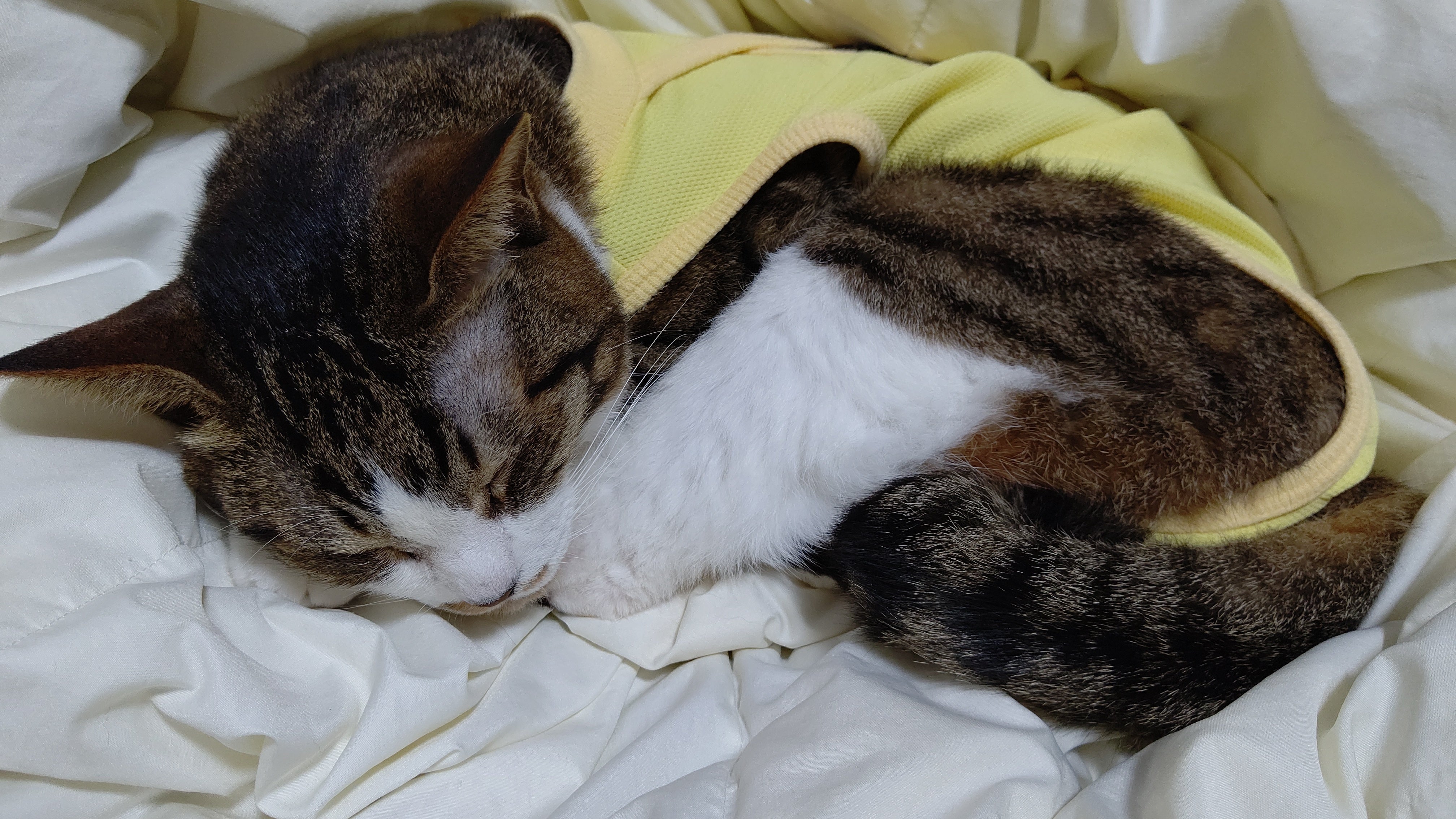 4/14 大学病院 退院(↓黄色の服は傷口を舐めないように着せているエリザベスウェアです)