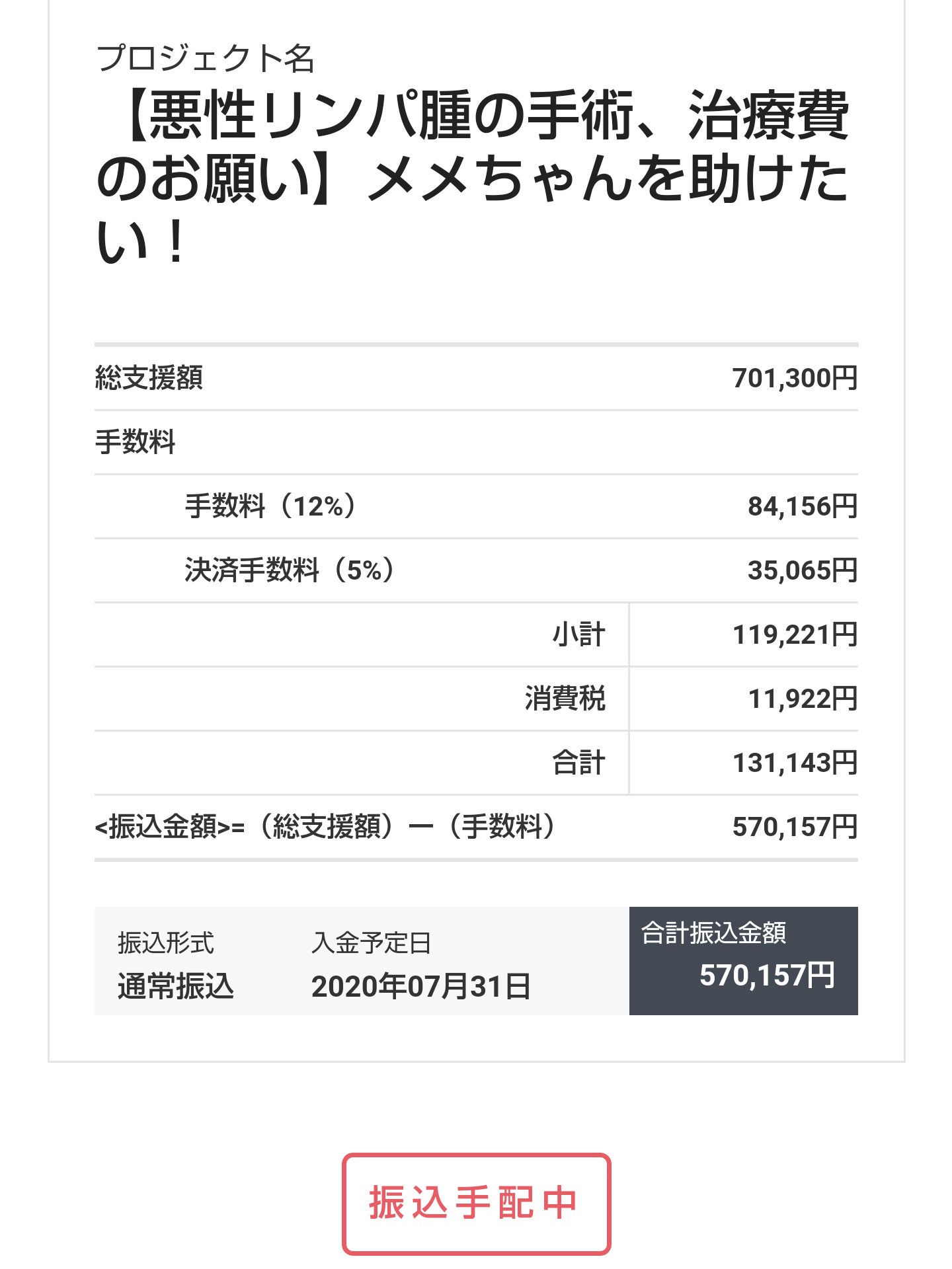 6/25、メメの治療費を募るクラウドファンディングが終了しました。