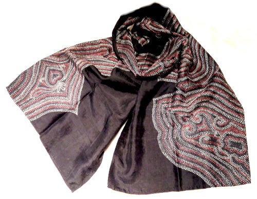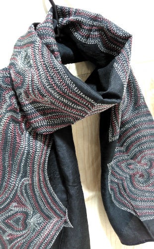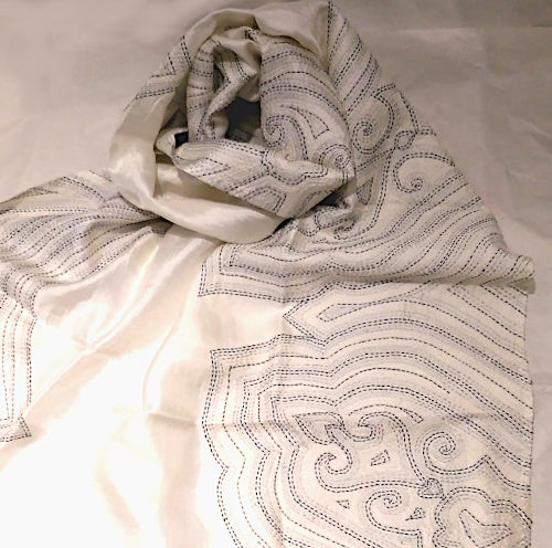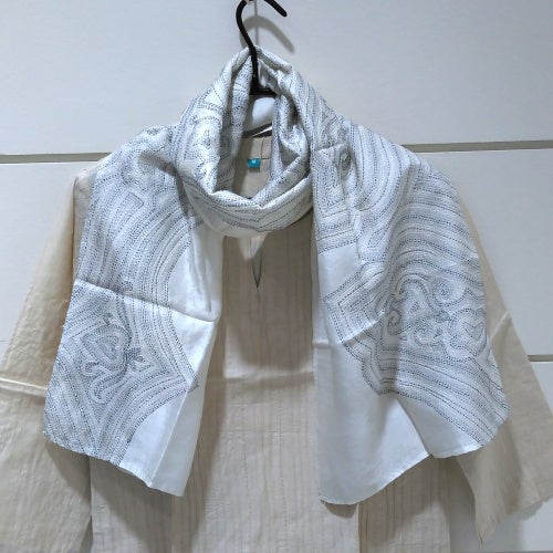 本体も手織りのシルク100%の素材に、とても細かい刺し子の刺繍を施した美しいスカーフです。