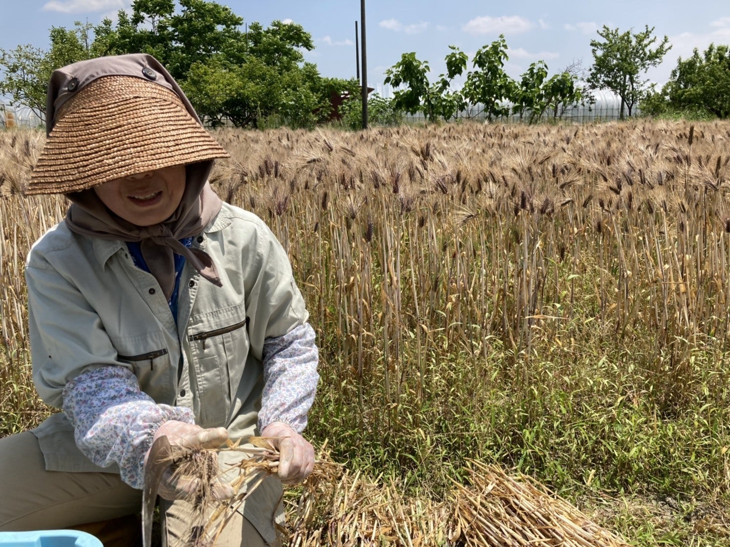 麦刈り中、穂を摘み、手で刈ります。むっちゃ暑かったです(;^ω^)