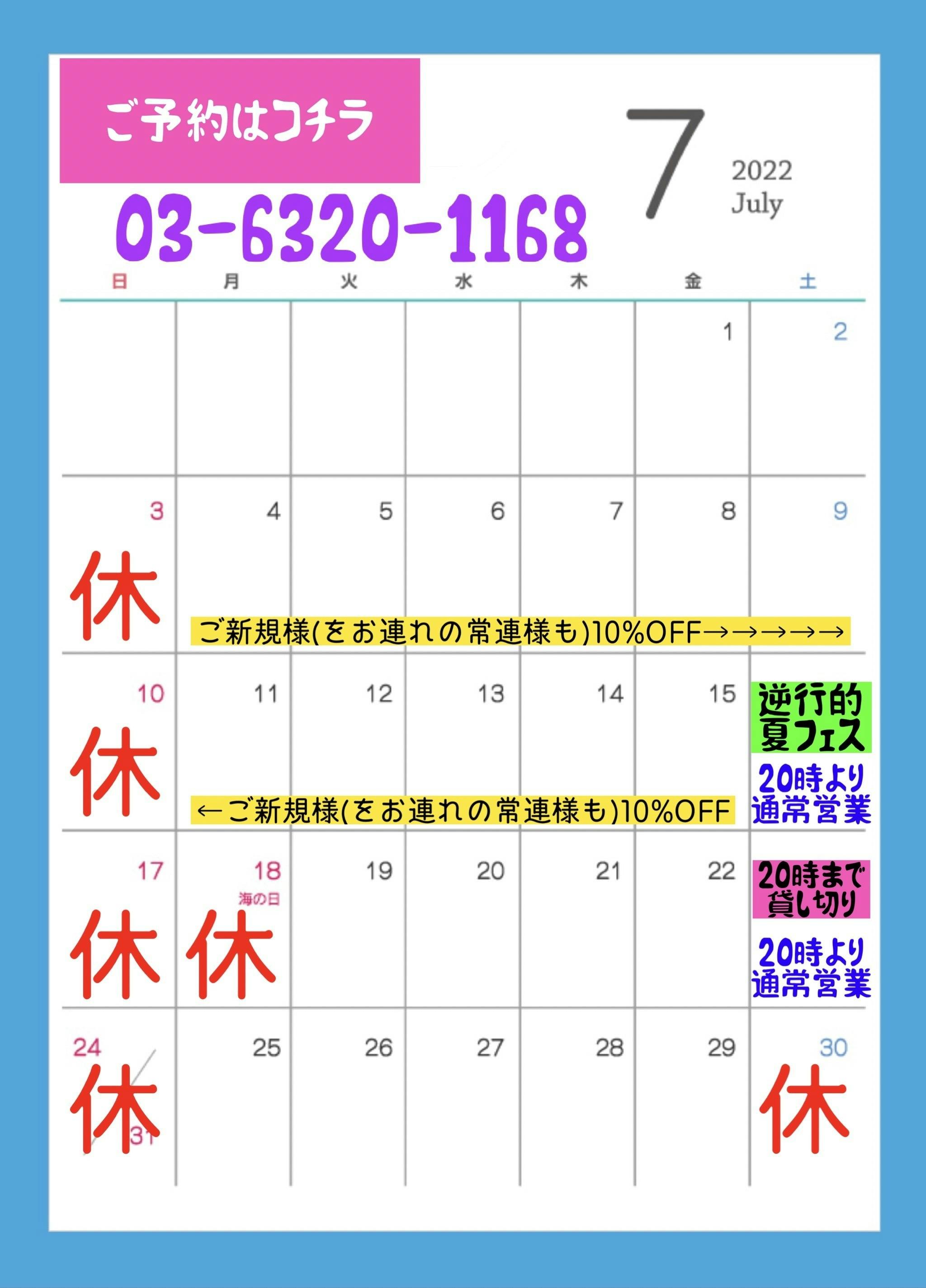 7月4日〜15日まで、ご新規様(をお連れの常連様)10%OFFです