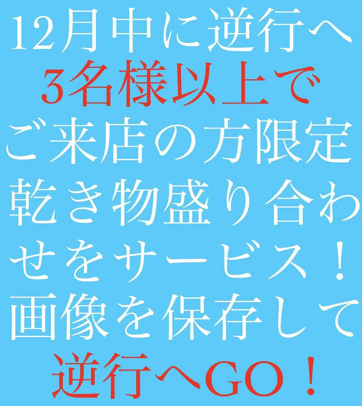 今月は団体様(3名様以上)で来て頂くと乾き物盛合わせがサービスとなります!是非クラファン以外のご活用でも遊びにきてください。