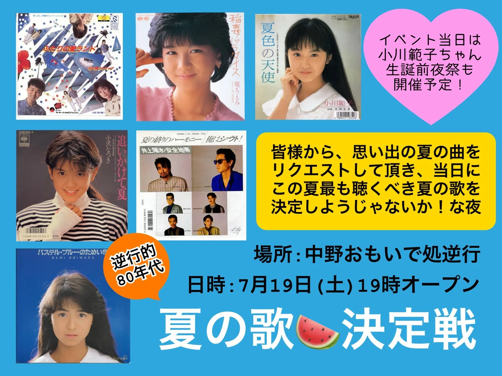 さて今週末の7/19(土)は「夏の歌決定戦」