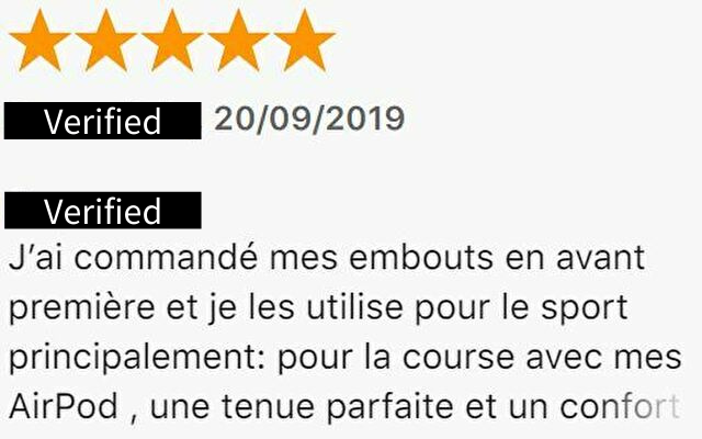 レビューを見て注文しました。注文したイヤーチップをAirPodsに付けてランニングなどスポーツ用として使ってます。実際に使ってみて快適で素晴らしいです!ランニングがさらに楽しくなりました。