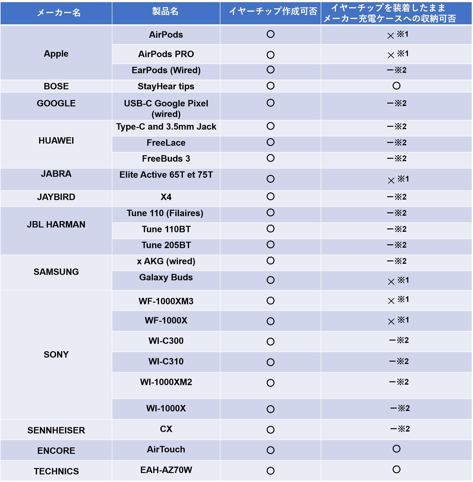 ※2:メーカーが充電ケースを作っておりません。