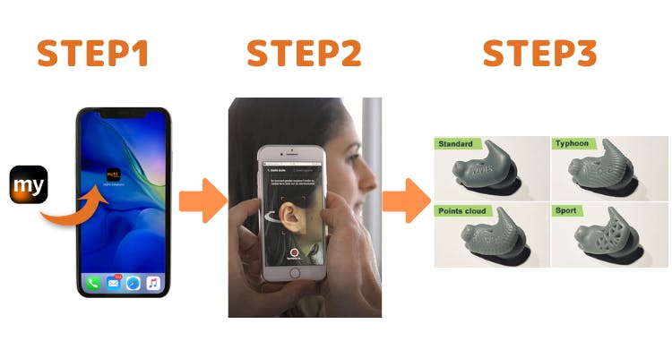 本商品はイヤホンが耳にフィットしていない人のために自分の耳に合ったオーダーメイドイヤホンカバーを作成できます。これまでオーダーメイドを作成しようと思うと直接店舗へ行き耳型の採取が必要でしたが、myfit solutionsは注文を全てアプリで完結できます。その所要時間約5分で完了します。