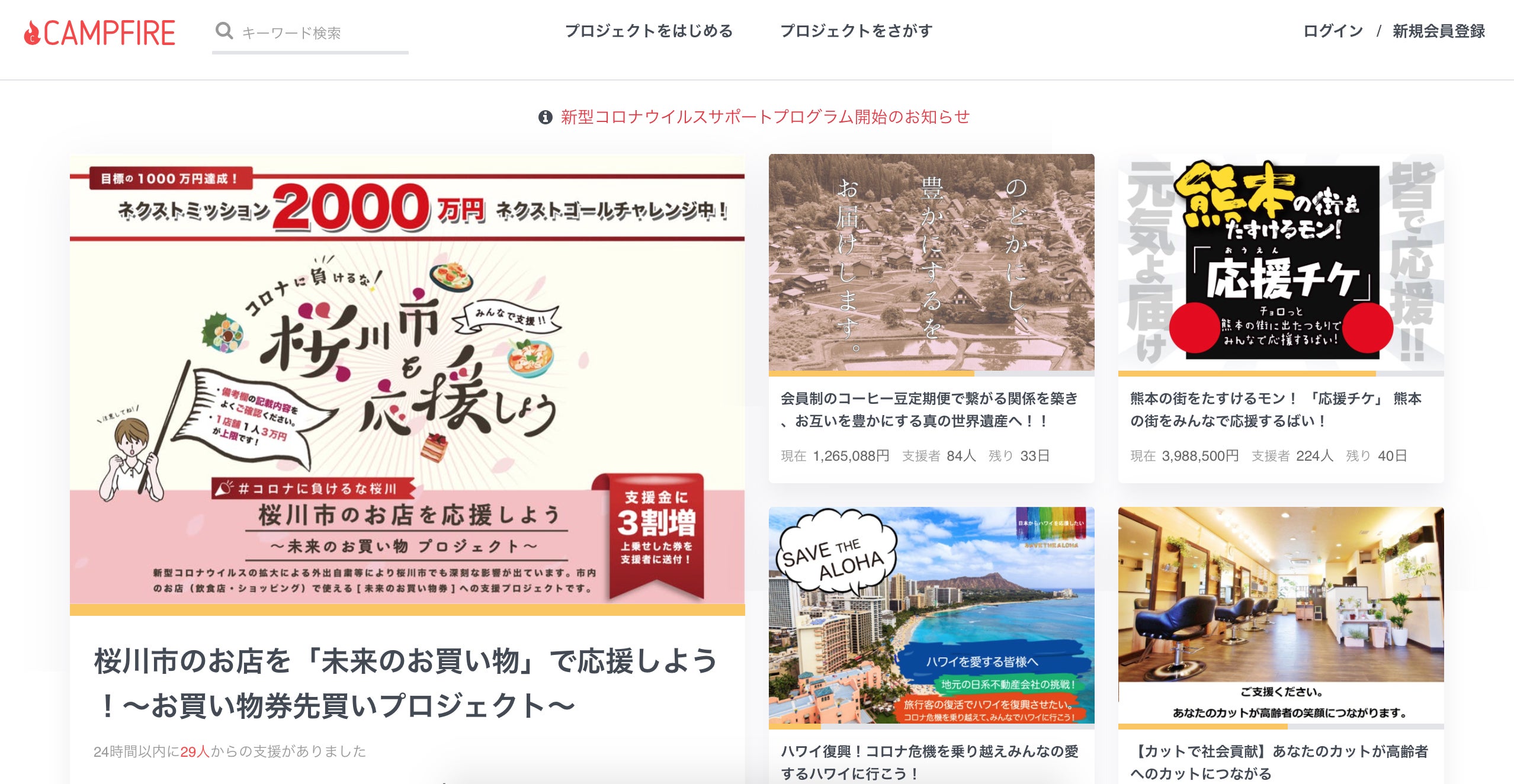 いつもお世話になっております『桜川市のお店を「未来のお買い物」で応援しよう!』プロジェクトオーナーの桜川市のお店を応援しようプロジェクトですさて、ご支援いただいている皆さまに、御礼方々ご報告いたしますな、な、なんと!当プロジェクトがCAMPFIREのトップページに掲載されました!!!このような快挙を達成できたのも、ひとえに当プロジェクトを応援してくださる皆さまのおかげです!ほんとうにありがとうございます!!桜川市のお店を「未来のお買い物」で応援する輪をもっともっと大きくできるよう、プロジェクト一同がんばってまいります引き続き、ご支援ご協力賜りますよう、なにとぞよろしくお願い申し上げます#コロナに負けるな桜川