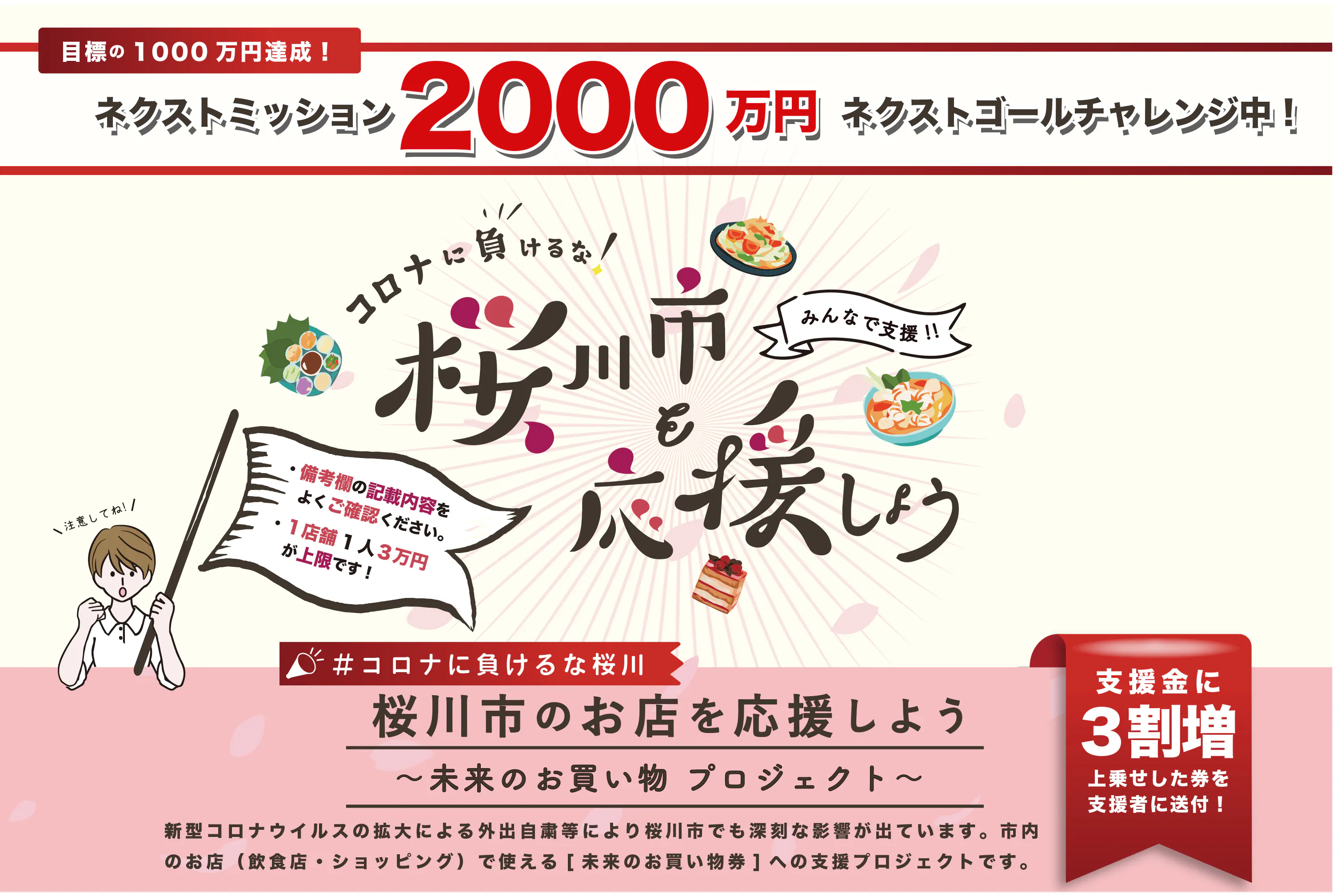 新型コロナウイルスの影響を受けている桜川市のお店を応援する輪を更に広げられるように、次なる目標を『2,000万円』に設定し、がんばってまいります!