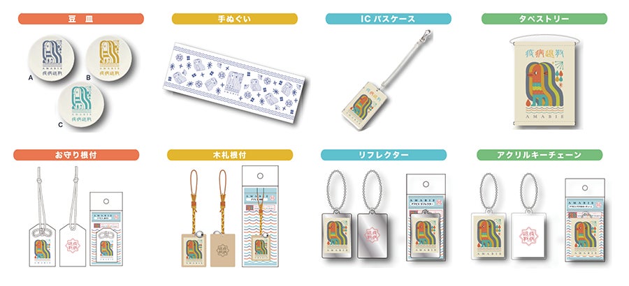 「アマビエ疫病退散プロジェクト」では国内メーカーで製作した新アイテム(菓子・雑貨など)を続々と展開中!