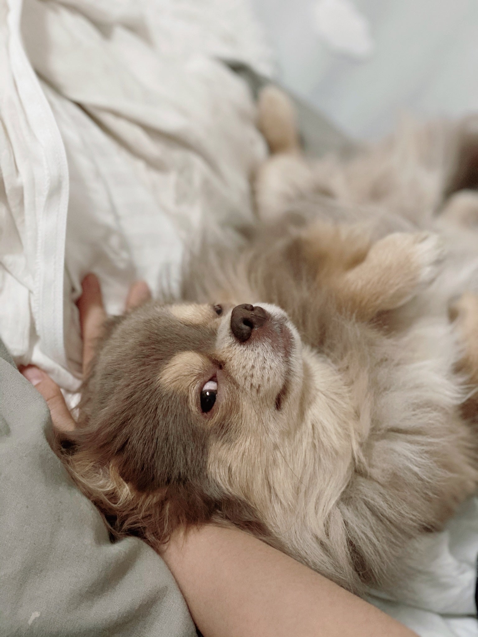 掲載終了間近の珍しい色の子犬に目が止まり、一匹でも殺処分される子達を救いたいという思いから、家族として迎え入れたのが始まりです。