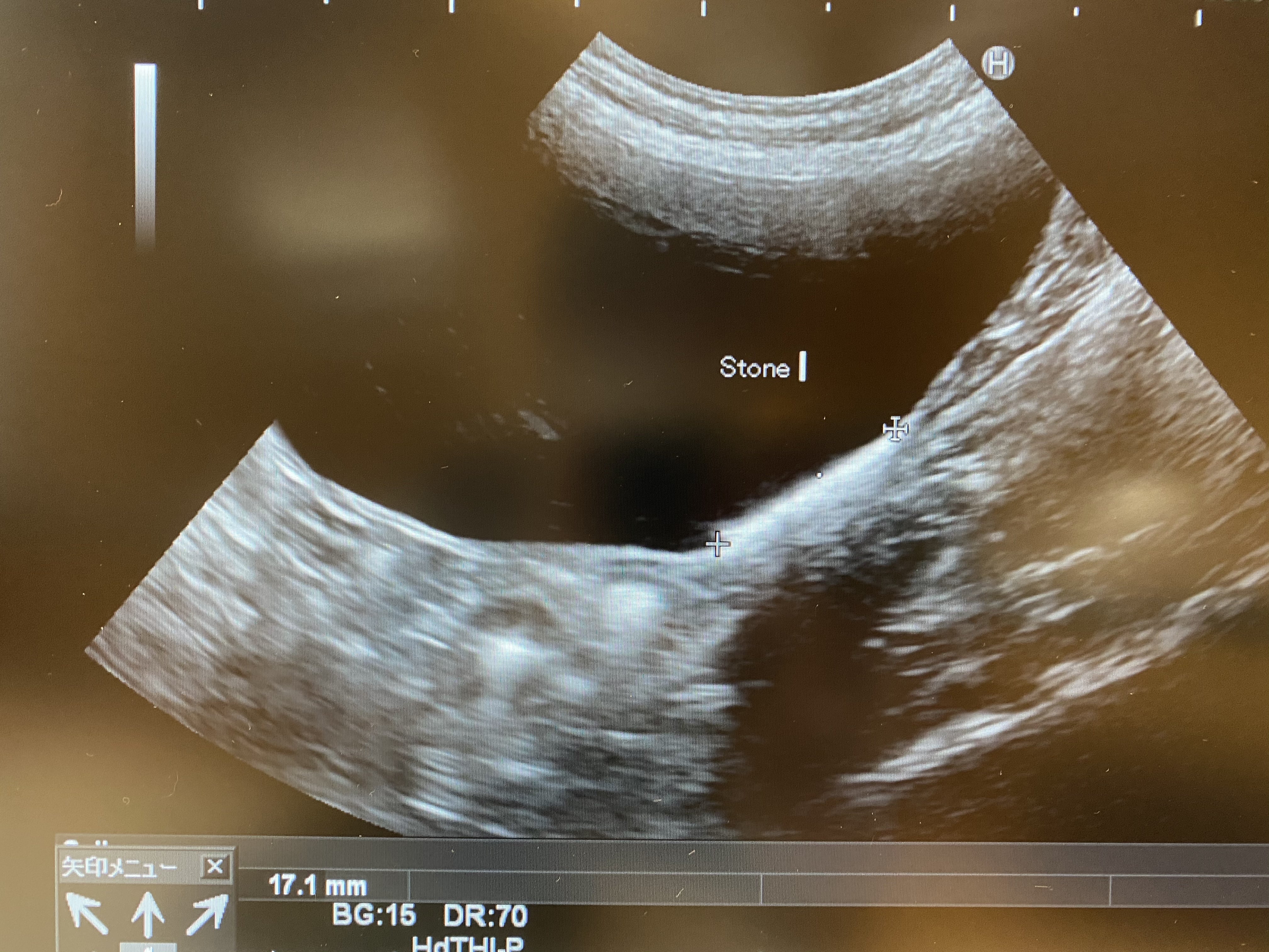 その他、手術に支障のある大きな問題は無かったのですが、ひとつだけ心配なのがエコー検査で見つかった尿結石です。