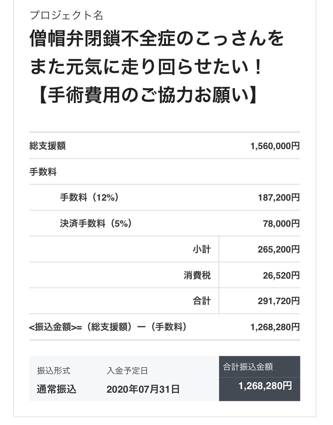 この集まった資金は全て、こっさんの手術費に充てさせていただきます。