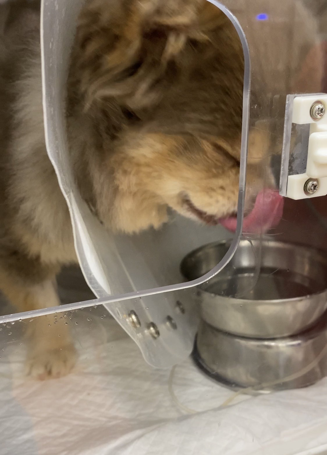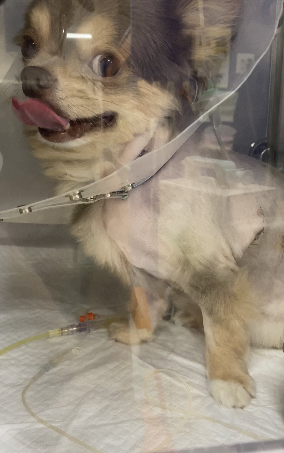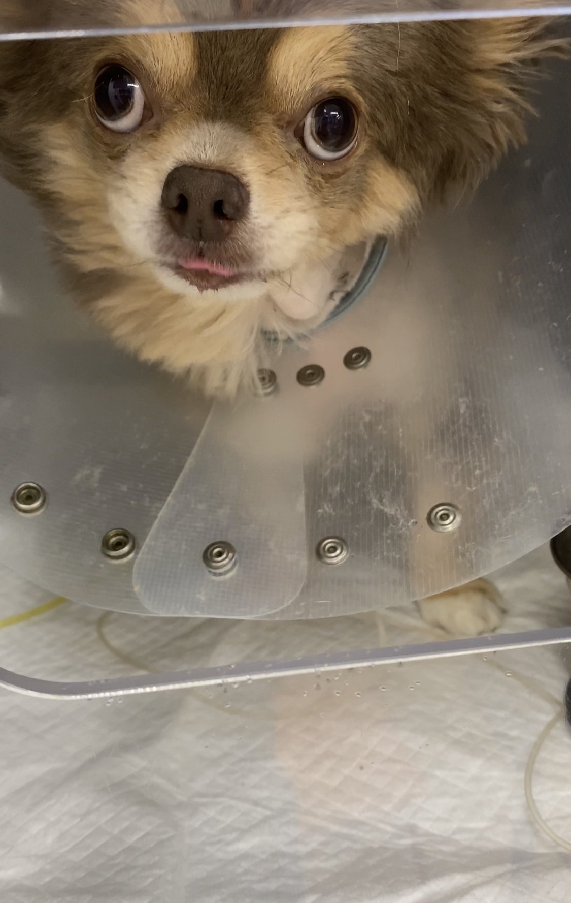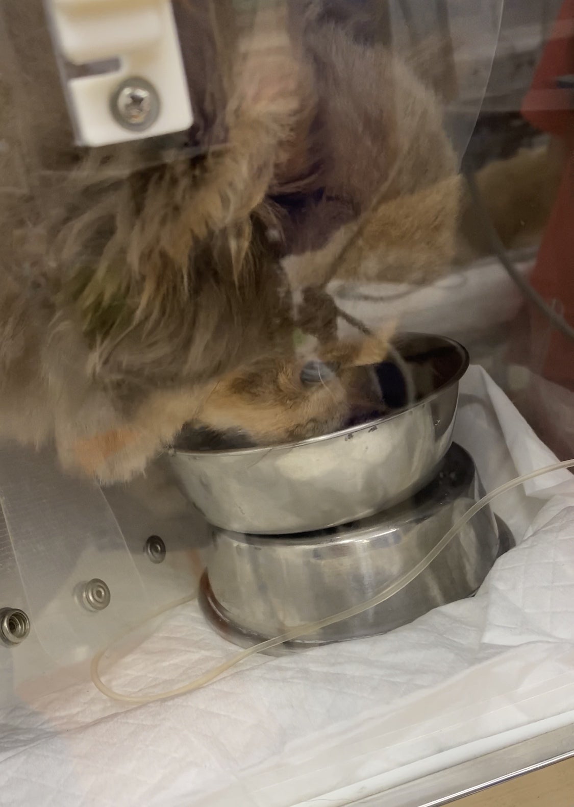 手術直後の麻酔が切れたうつろな状態で酸素室で寝ているこっさんを見て痛々しくもがんばって生き延びてくれて、息をしてくれていて本当によかったと思いました。