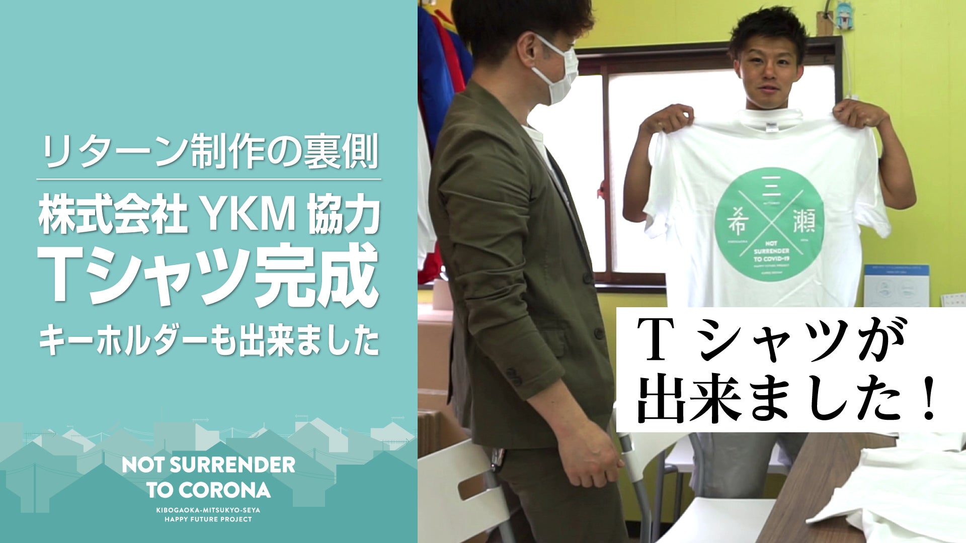 いつも活動報告をご覧いただき、ありがとうございます。プロジェクト副代表の二宮です。先日、ご報告させて頂いたTシャツ制作の続編です。YKMさんからサンプルが出来上がったとのご連絡をいただき代表の水谷とデザインを手がけたサカヨリクニヲさんとその仕上がりを確認しに行ってきました。とってもいい感じです!生地も厚手なので、ラフに着て頂いても大丈夫だと思います。そしてキーホルダー。クリアでめちゃめちゃ可愛い仕上がりになっています!よろしくお願い致します。