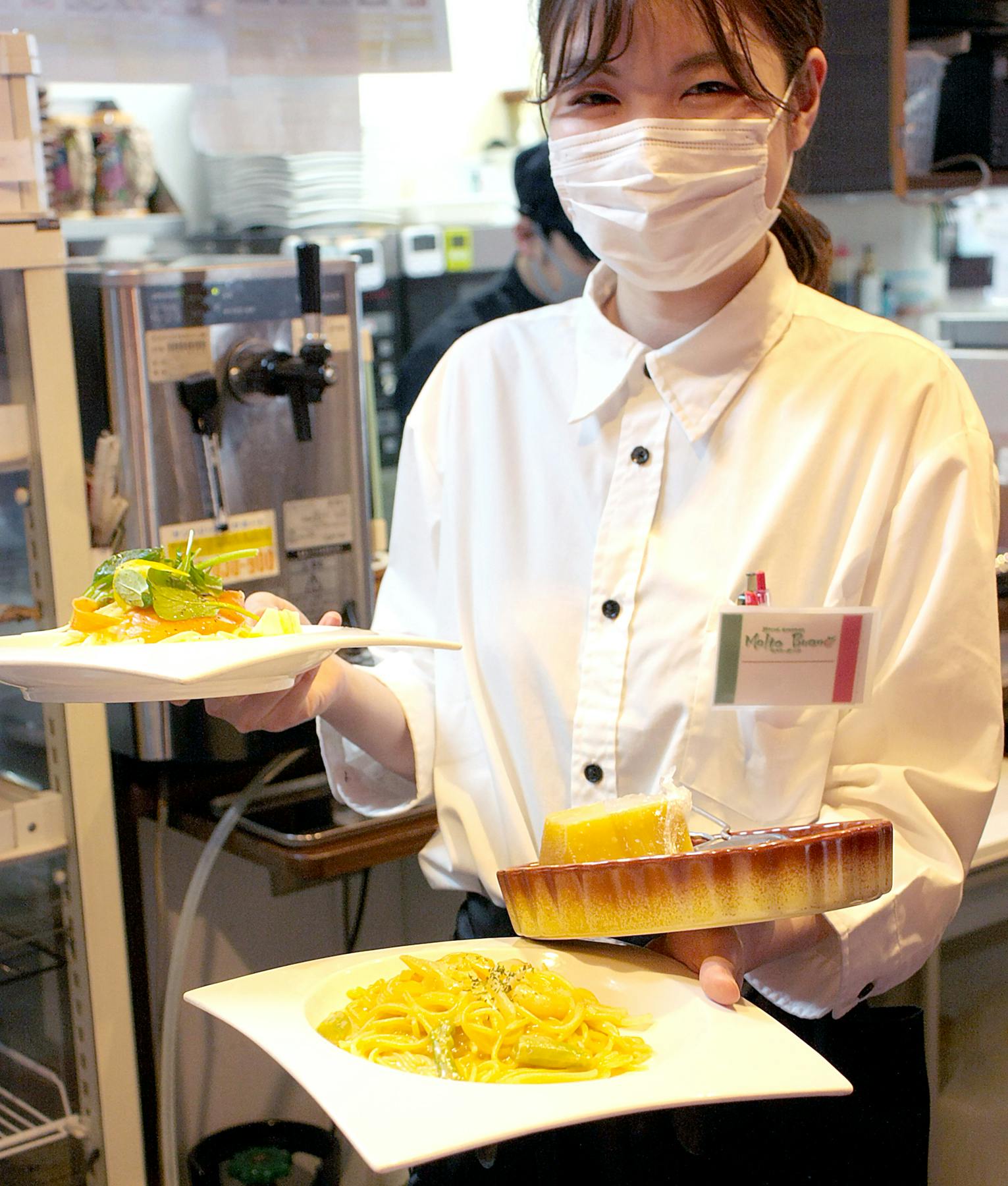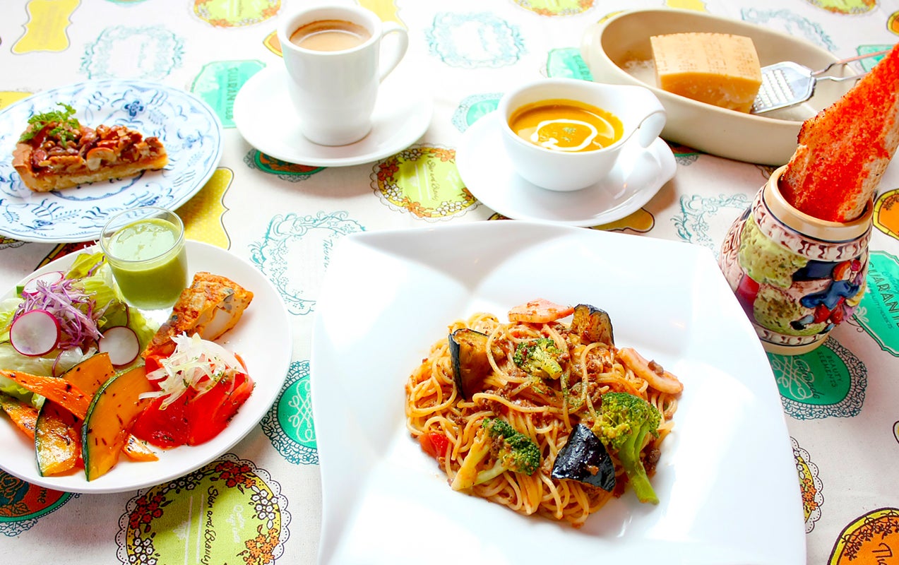 バジルソース、クリームソース、和風ソース、トマトソース、ミートソース、たらこ&明太子、ペペロンチーノに海鮮やキノコ類など多彩な具材を使ったメニューは40種以上を数えます。さらに季節ごとに旬の素材を使った限定メニューも登場しています。