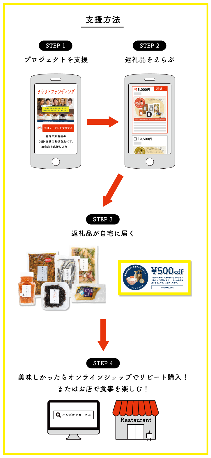 ◼️福岡の飲食店の方々から支援者の方に向けて一言もらっています。