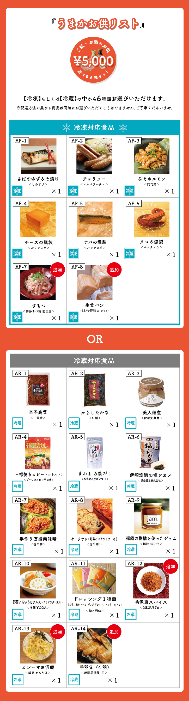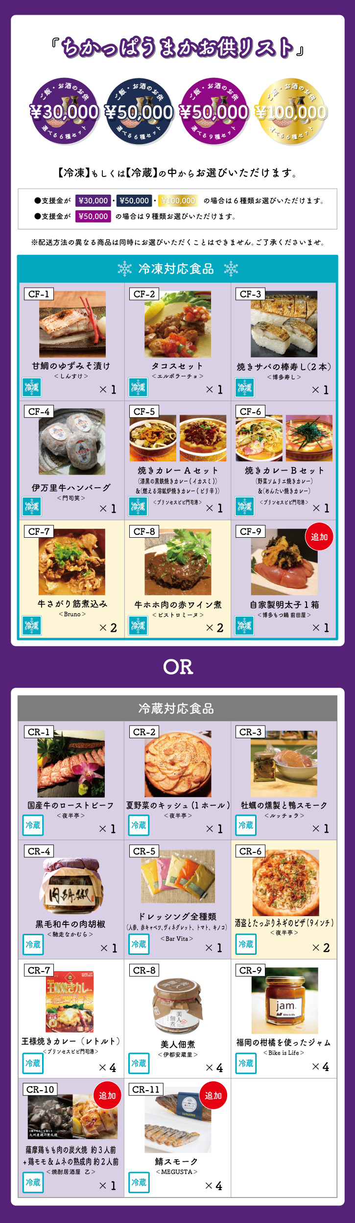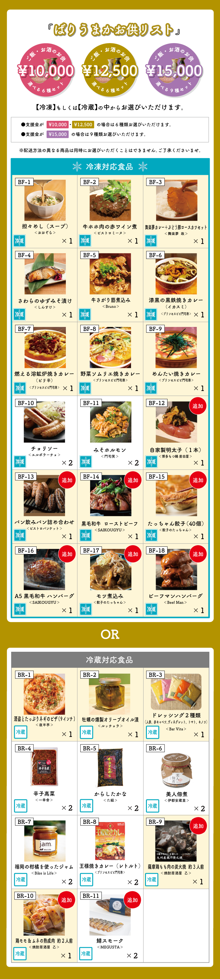 <ばりうまかお供リスト 10,000円、12,500円、15,000円支援>