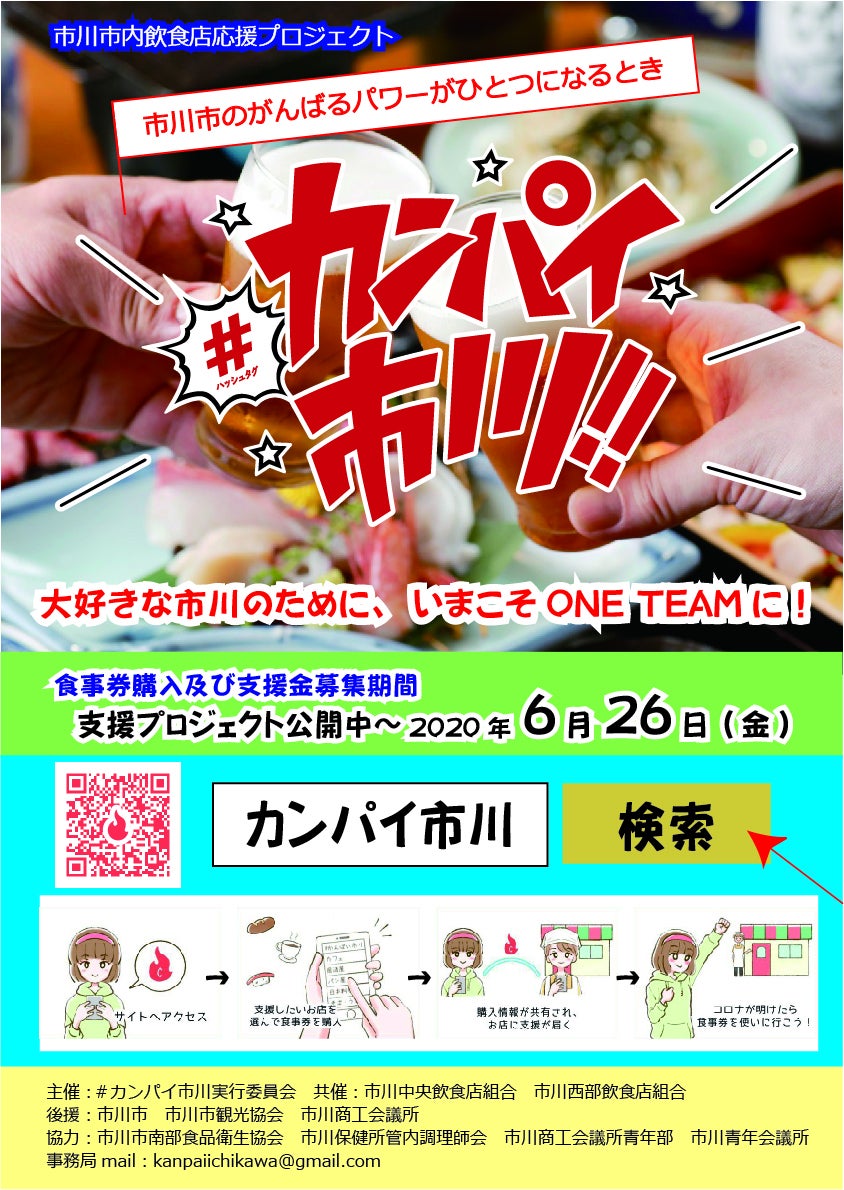 #カンパイ市川へご支援いただきました皆様へカンパイ市川へのご支援、誠にありがとうございます。実行委員会の本八幡botです。本日campfire様から無事に入金があり、各店舗様へご支援をお届けすることができました。ご不在などでまだお届けできていない店舗様もありますが、明日以降順次お届けして参ります。チケットは明日8/1より有効化されますので、実行委員会からお届けしている「かんぱい市川よりご支援店舗様のご確認」というメールをお読みいただき、ご支援されたお店でメールアドレスをご提示頂けたらと思います。メールアドレスの確認をもってチケットがお渡しされますので、以後お好きなタイミングでチケットをご利用頂けたらと思います。4月末に立ち上げて以来、走りながら考えるようなプロジェクトでした。多くの困難に見舞われながらの実行となりましたが、皆様に支えて頂けたおかげで無事ご支援のお届けまで辿り着くことができました。ここに実行委員会一同、改めて深く御礼申し上げます。カンパイ市川はご支援とチケットのお渡しをもって、店舗様への役割を終えます。これから全体支援いただいた方への特別返礼品のお届けなどの役目もありますが、ここで一つの区切りとして、ご支援いただいた皆様への御礼とさせて頂きます。コロナ禍の中、私たちカンパイ市川へご支援をいただき、誠にありがとうございました。皆様の推しのお店へのお気持ちをお届けできたこと、本当に嬉しく思います。ぜひチケットを使っていただき、楽しい時間をお過ごし頂けたらと思います。ありがとうございました!!カンパイ市川!!
