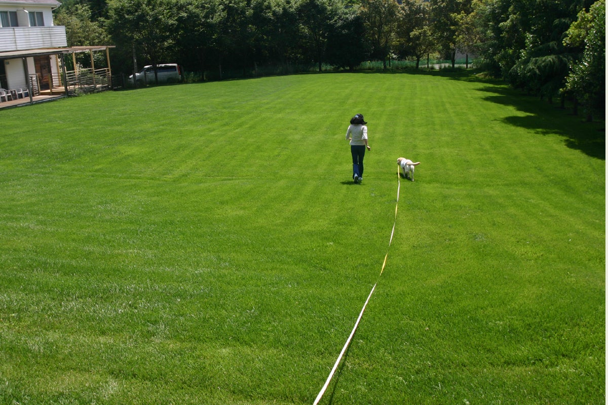 ドッグランは、素足で遊び、足の裏もなめたりすることもあるワンちゃんの為に無農薬で芝生を育てています。