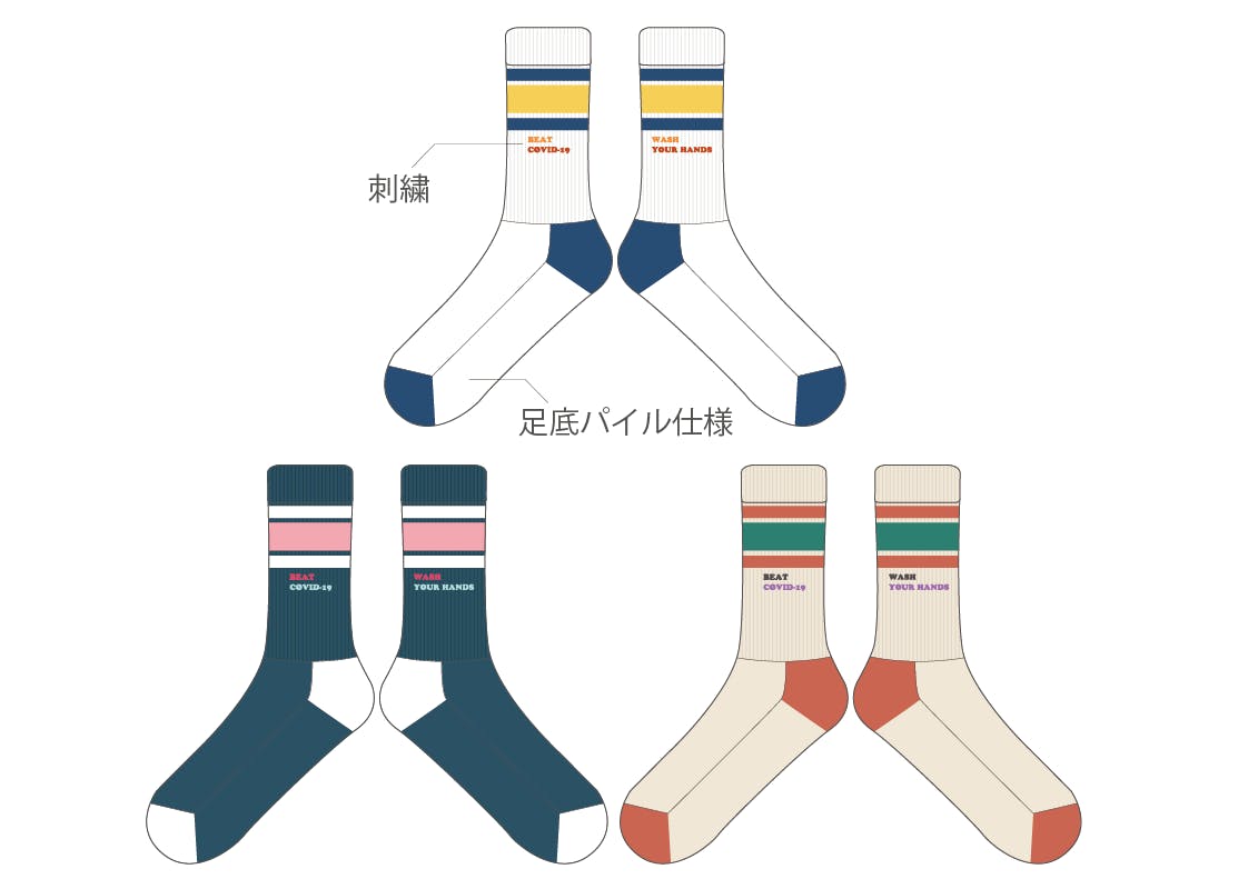 この場をお借りして、プロジェクト用にデザインしたソックスを受注販売させて頂き、その売上は全て工場への発注資金、リターンの配送料として使用させて頂きます。