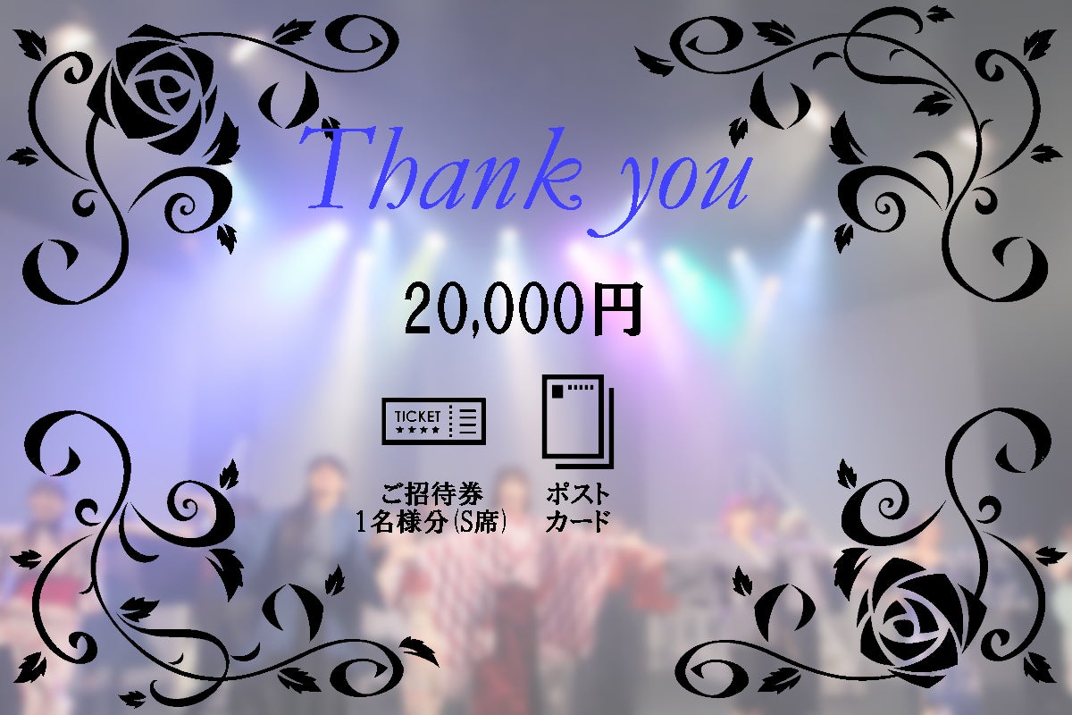 ◆今後のお好きな公演のご招待(S席(前列保証指定席)優先申し込み)2回分と、同伴者様1名無料、ポストカード、DVD2作品、協賛クレジット